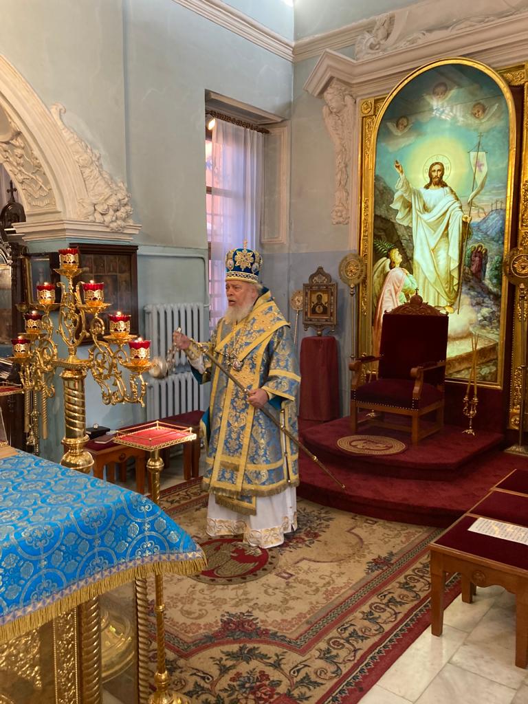 Богослужение возглавил настоятель подворья митрополит Филиппопольский Нифон в сослужении архимандрита Филиппа и клириков храма в честь Архистратига Божия Гавриила.