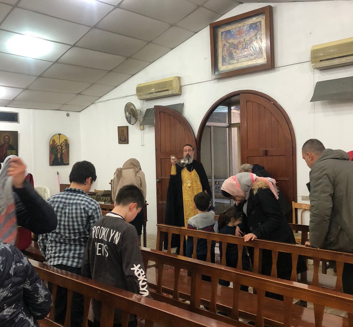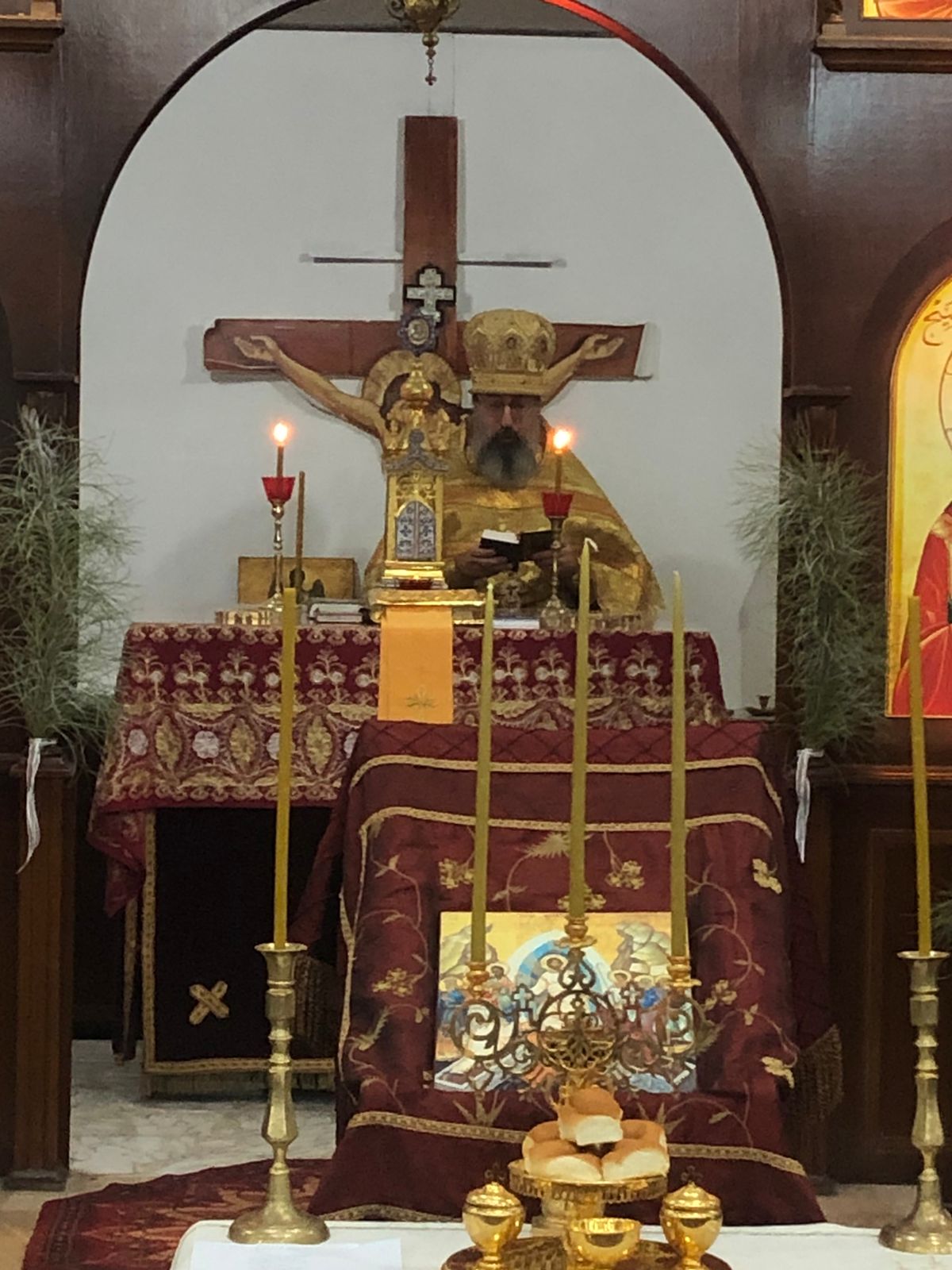 После отпуста богослужения настоятель произнёс проповедь на тему праздника и прочитал молитву о восстановлении мира.