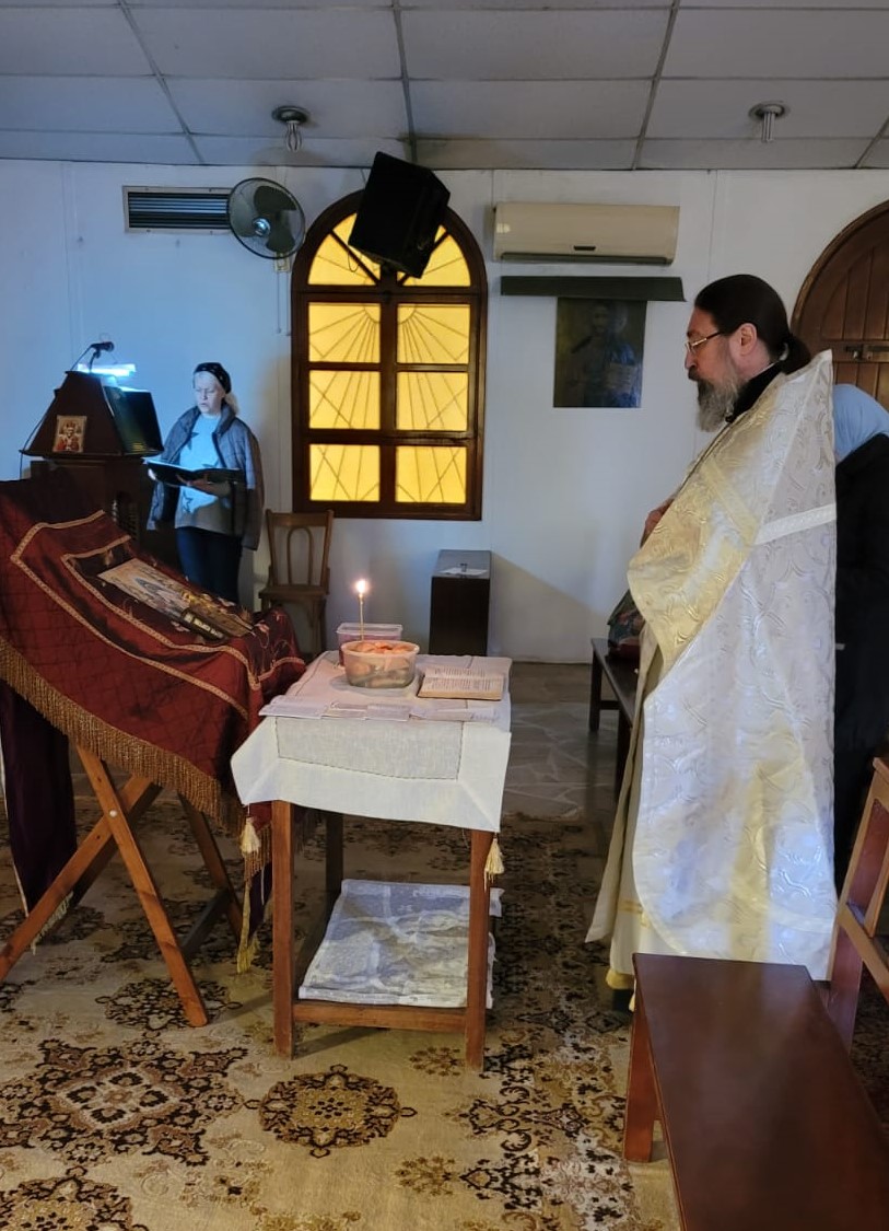 В субботу Второй седмицы Великого Поста, 19 марта, в храме Благовещения Пресвятой Богородицы в Жаль Эль Диб была совершена Заупокойная Божественная литургия. Богослужение возглавил архимандрит Филипп в сослужении дьякона Максима Сабаха.