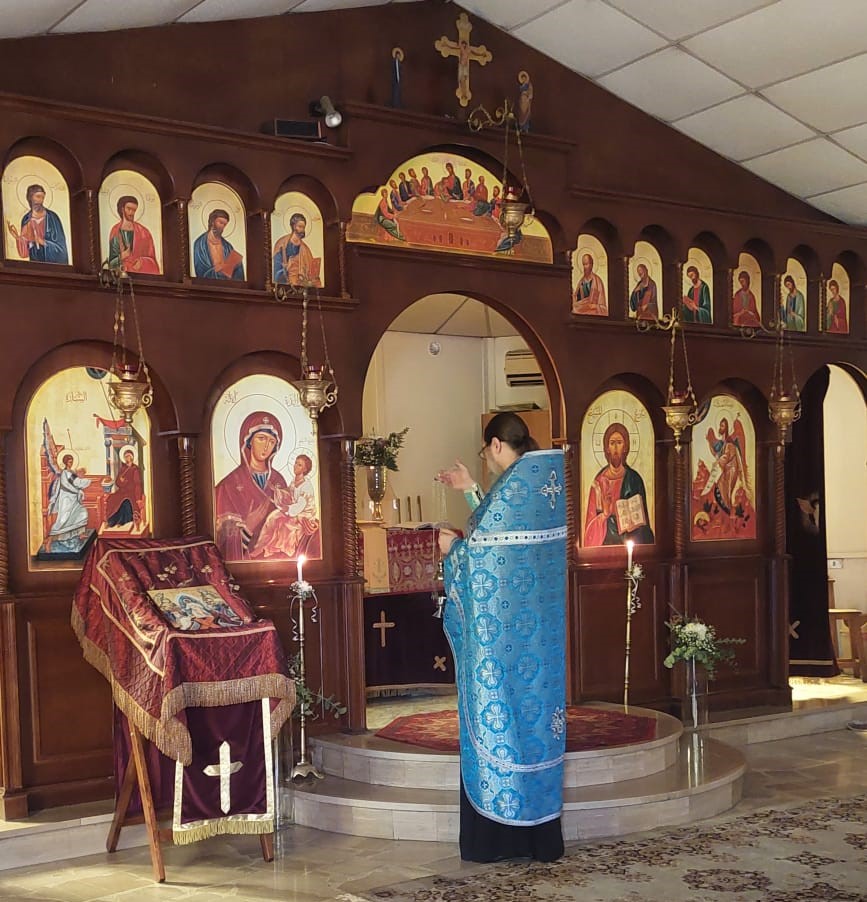 В субботу, 9 апреля, в день Похвалы Пресвятой Богородицы в храме Благовещания в Жаль Эль Диб была совершена Утреня с пением акафиста Пресвятой Богородицы. Богослужение совершил архимандрит Филипп. После отпуста Утрени настоятель произнес проповедь на тему праздника.