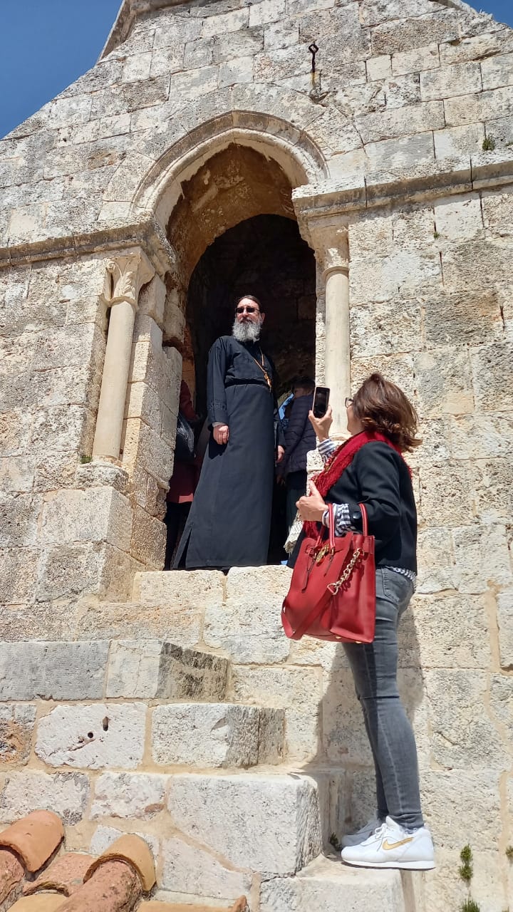 После окончания богослужения архимандрит Яков (Халиль) рассказал паломникам из Бейрута об истории и сегодняшнем дне Успенского Патриаршего монастыря в Баламанде.