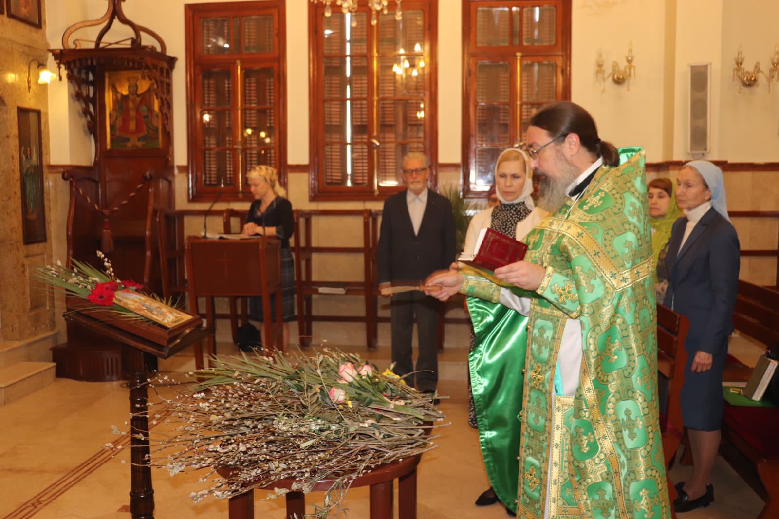 В воскресенье, 17 апреля, в Великий двунадесятый праздник Входа Господня во Иерусалим Утреню и Божественную литургию в храме св. Иоанна Предтечи совершил архимандрит Филипп.