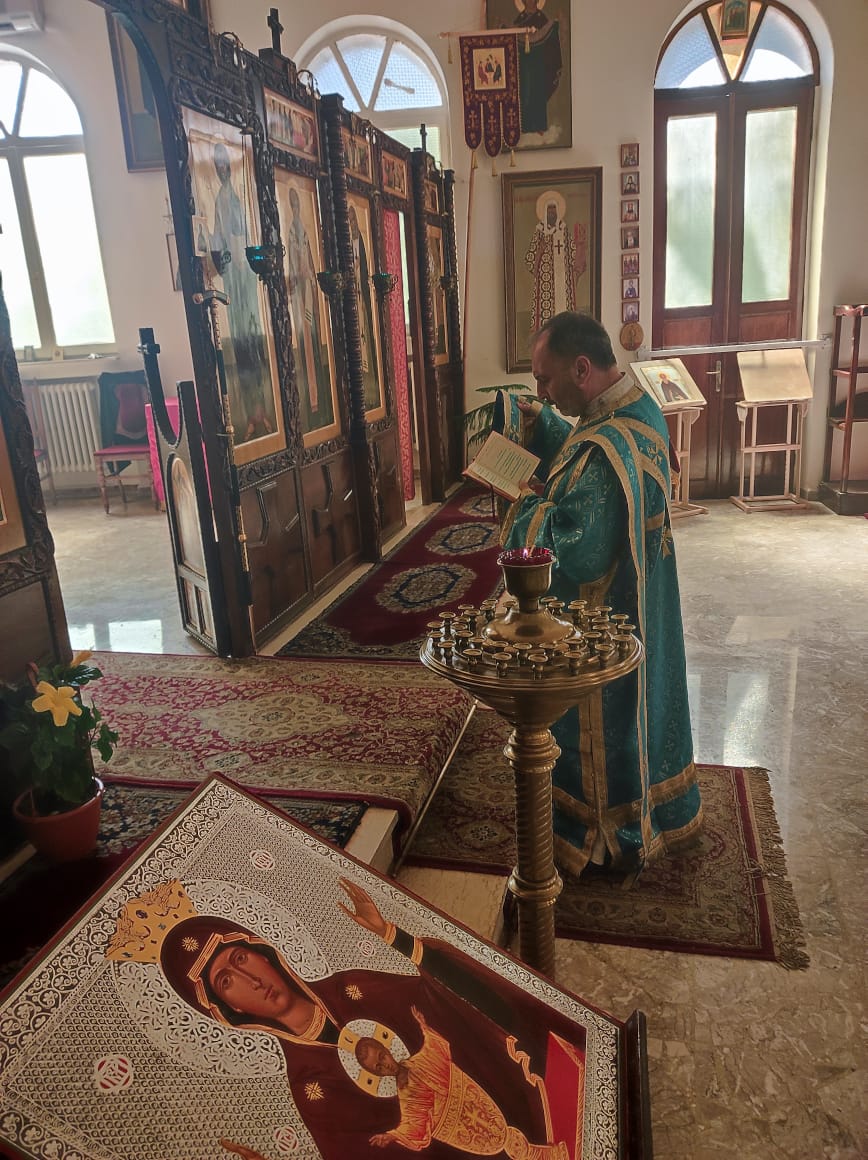 В воскресенье, 4 сентября, в Неделю 12-ю по Пятидесятнице Божественную литургию в храме святого священномученика Игнатия Богоносца при представительстве Русской Православной Церкви совершил архимандрит Филипп в сослужении диакона Максима Сабаха.