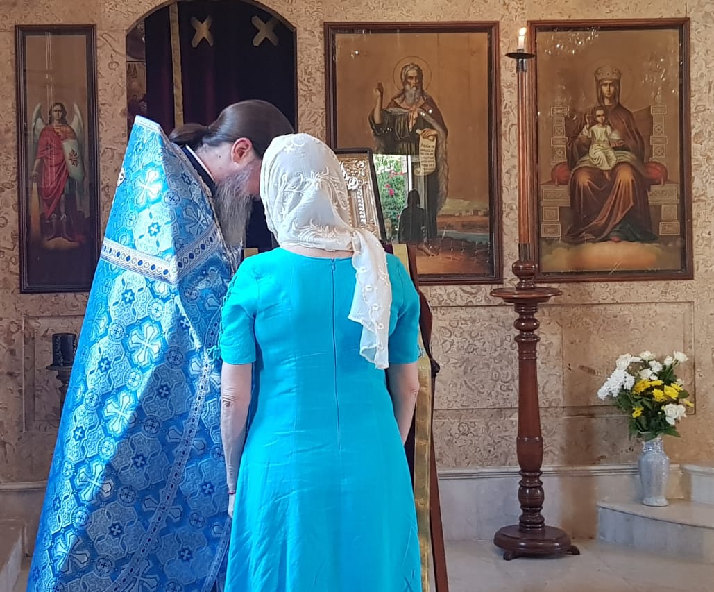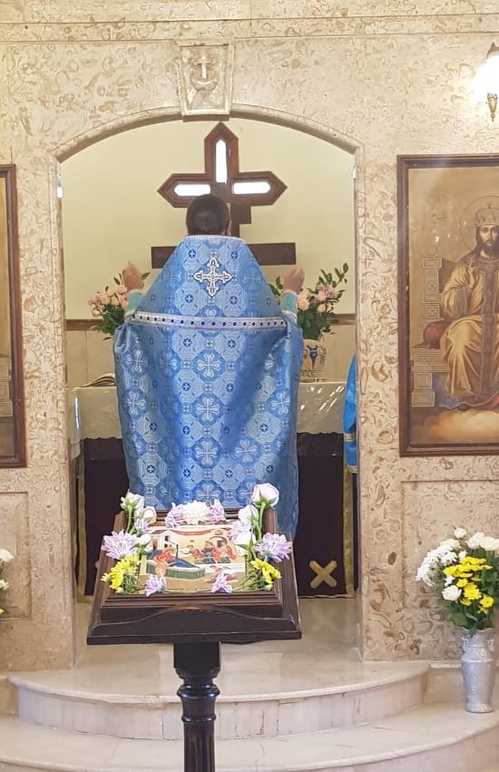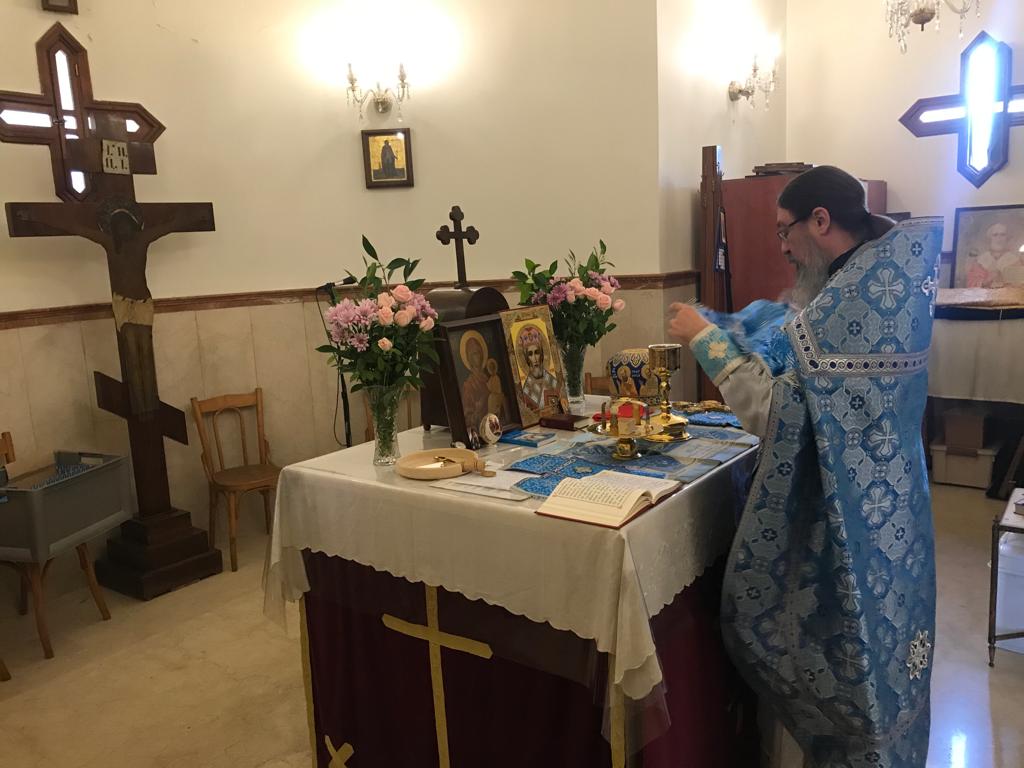 Богослужение совершил архимандрит Филипп в сослужении диакона Максима Сабаха. Богослужение совершалось на арабском и церковнославянском и арабском языках.
