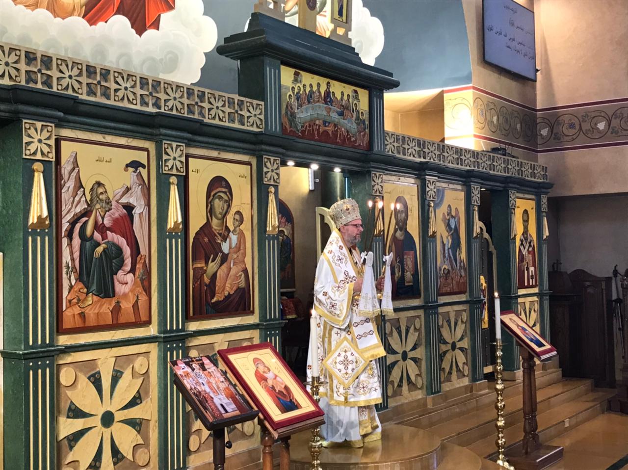 Божественную литургию возглавили митрополит Гор Ливанский Силуан и митрополит Филиппопольский Нифон в сослужении настоятеля Подворья Русской Православной Церкви в Ливане архимандрита Филиппа, священников Агабуа Науса и Николя Бу Сааба и диакона Лука Абдо (митрополия Гор Ливанских).
