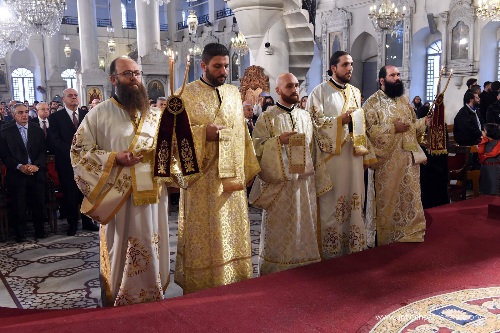 После отпуста Божественной литургии с Первосвятительским словом к пастве обратился Блаженнейший Патриарх Иоанн. Блаженнейший Владыка сердечно приветствовал митрополитов, участвующих в богослужении, представителя Святейшего Патриарха Московского и всея Руси Кирилла при Антиохийском Патриаршем Престоле архимандрита Филиппа и всех чад Святого Антиохийского Престола на Родине и в иных странах мира.