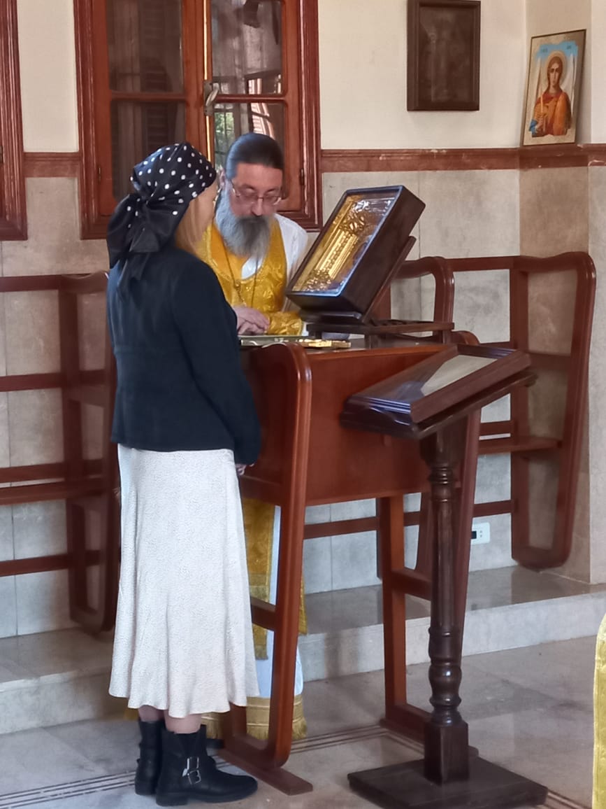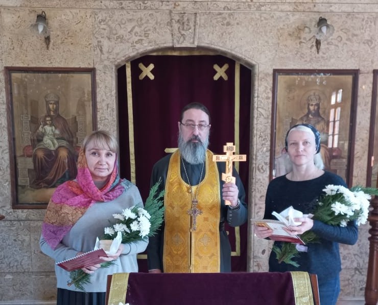 Затем настоятель поздравил с прошедшим Днем Ангела и Днем рождения регента Подворья Е. Баранову и постоянную прихожанку С. Шаиб, подарил им памятные подарки и возгласил многолетие.