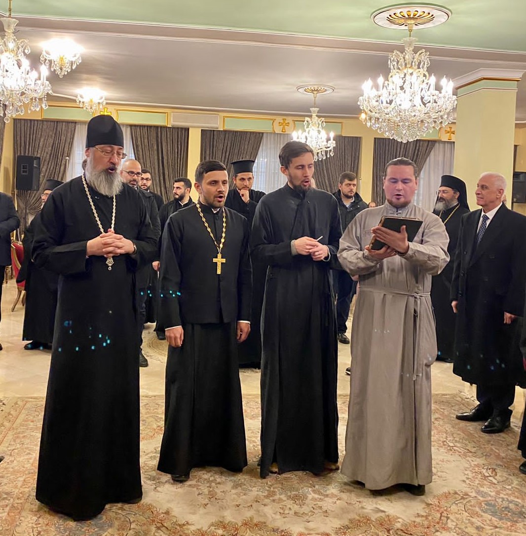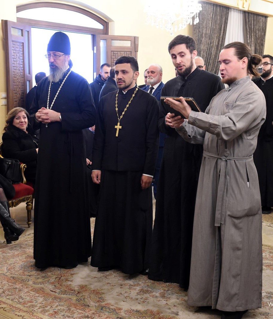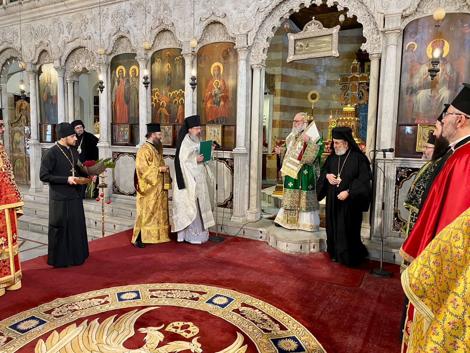 После отпуста Божественной литургии архимандрит Филипп сердечно приветствовал Блаженнейшего Патриарха Иоанна и передал ему Рождественское поздравление Святейшего Патриарха Московского и всея Руси Кирилла и Председателя Отдела внешних церковных связей Московского патриархата митрополита Волоколамского Антония.