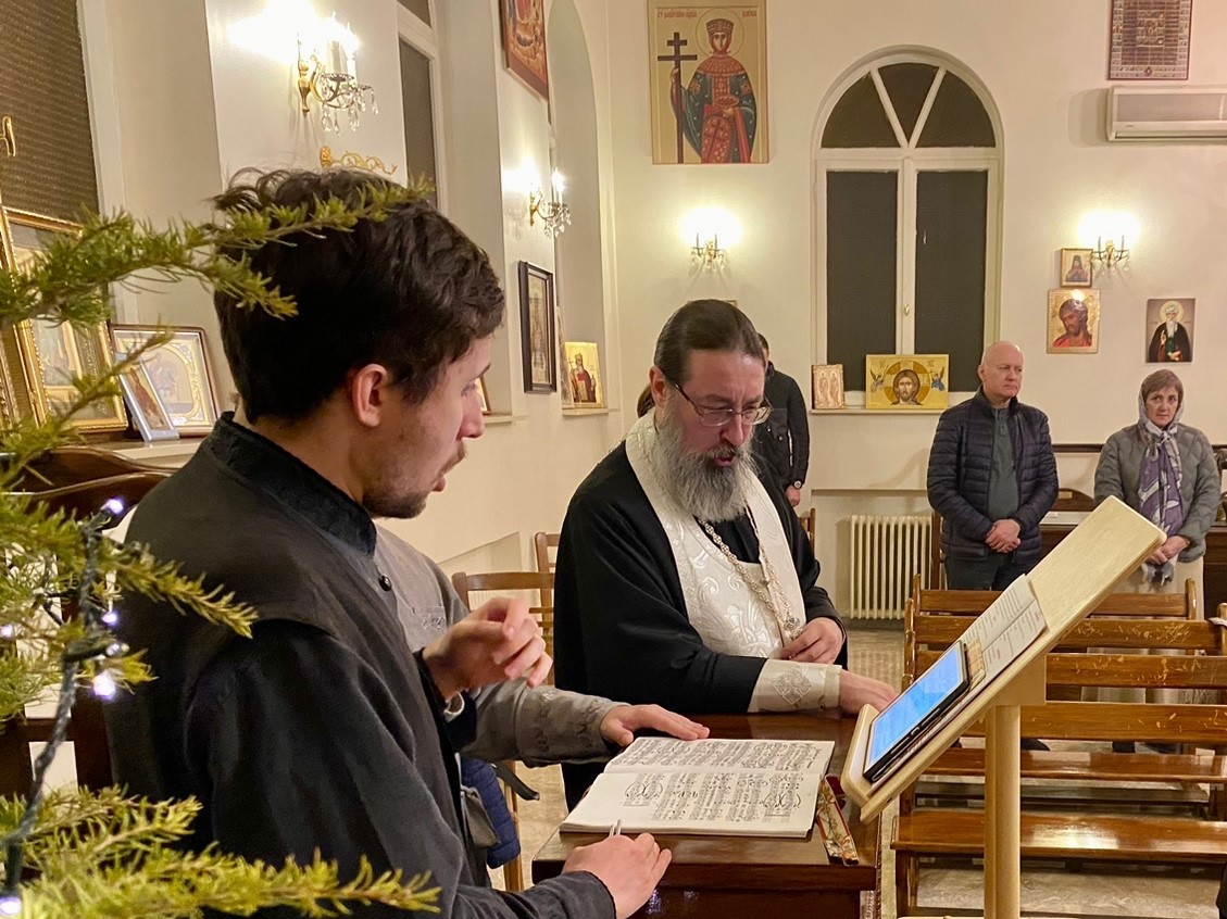После окончания богослужения в приходском зале Представительства состоялось разговение в ходе которого были исполнены рождественские колядки.
