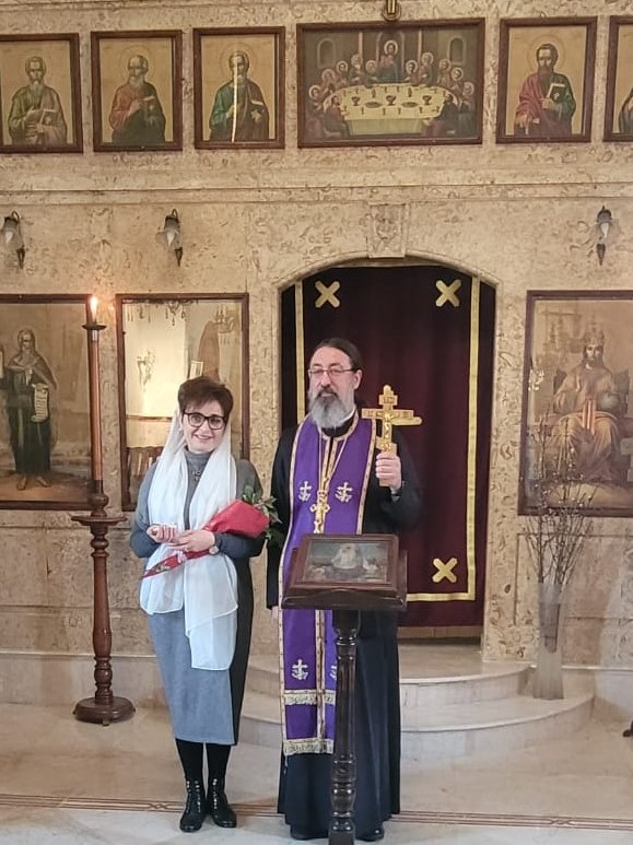 В конце богослужения настоятель поздравил с прошедшим днем рождения постоянных прихожанок Подворья Татьяну Ромаль и Ирину Салху.