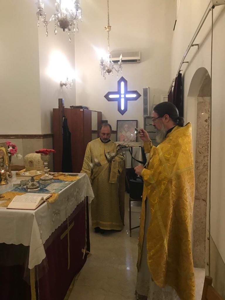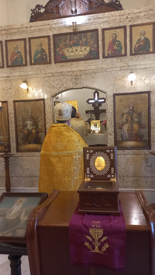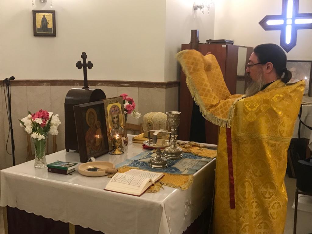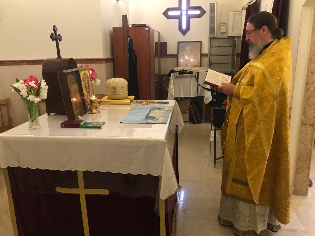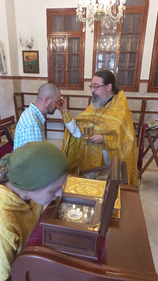 В воскресенье, 30 июля, в Неделю 8-ю по Пятидесятнице и день памяти святых отцов шести Вселенских Соборов в храме святого Иоанна Предтечи были совершены Утреня и Божественная литургия. Богослужения на церковнославянском и арабском языках совершил архимандрит Филипп в сослужении диакона Максима Сабаха.