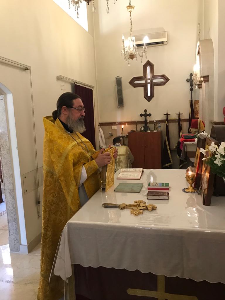 Богослужение на церковнославянском и арабском языке совершил архимандрит Филипп в сослужении диакона Максима Сабаха.