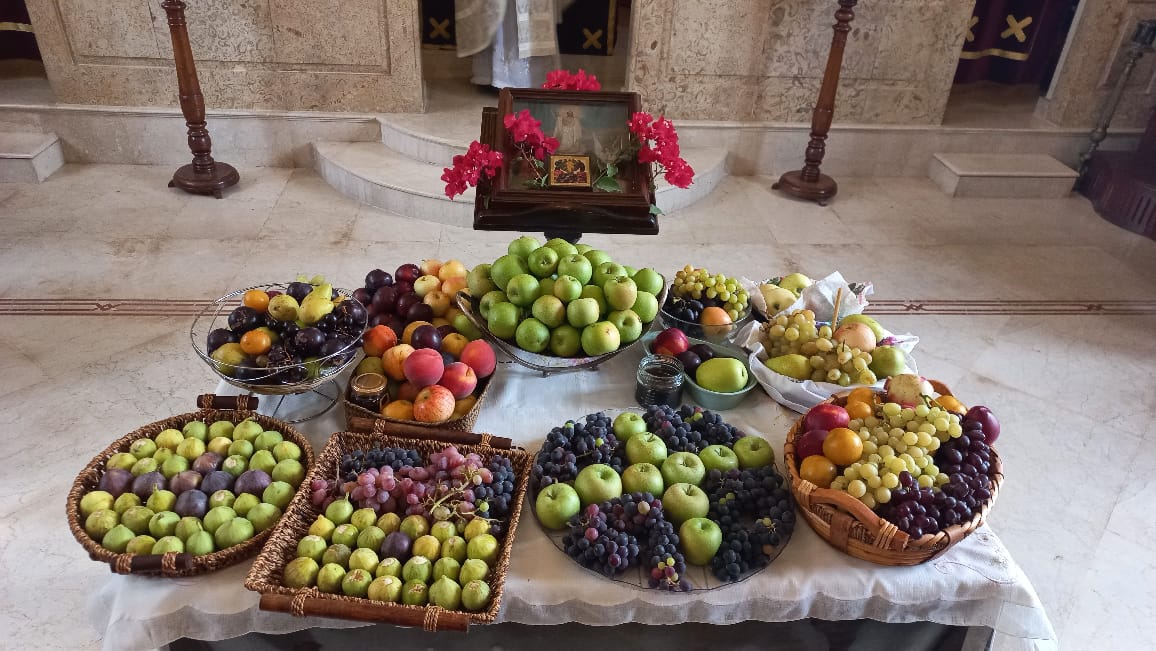 После отпуста Божественной литургии архимандрит Филипп совершил Чин освящения плодов нового урожая.