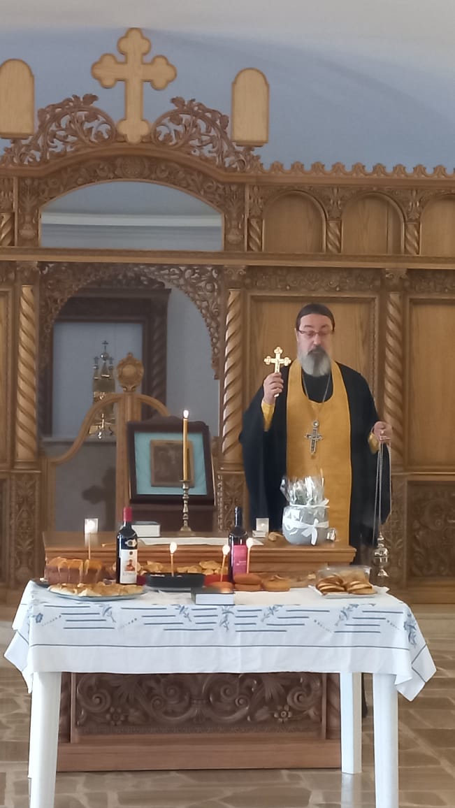 После отпуста богослужения староста Подворья Д. А. Зеленин поздравил настоятеля с днём рождения и вручил ему подарок от общины.