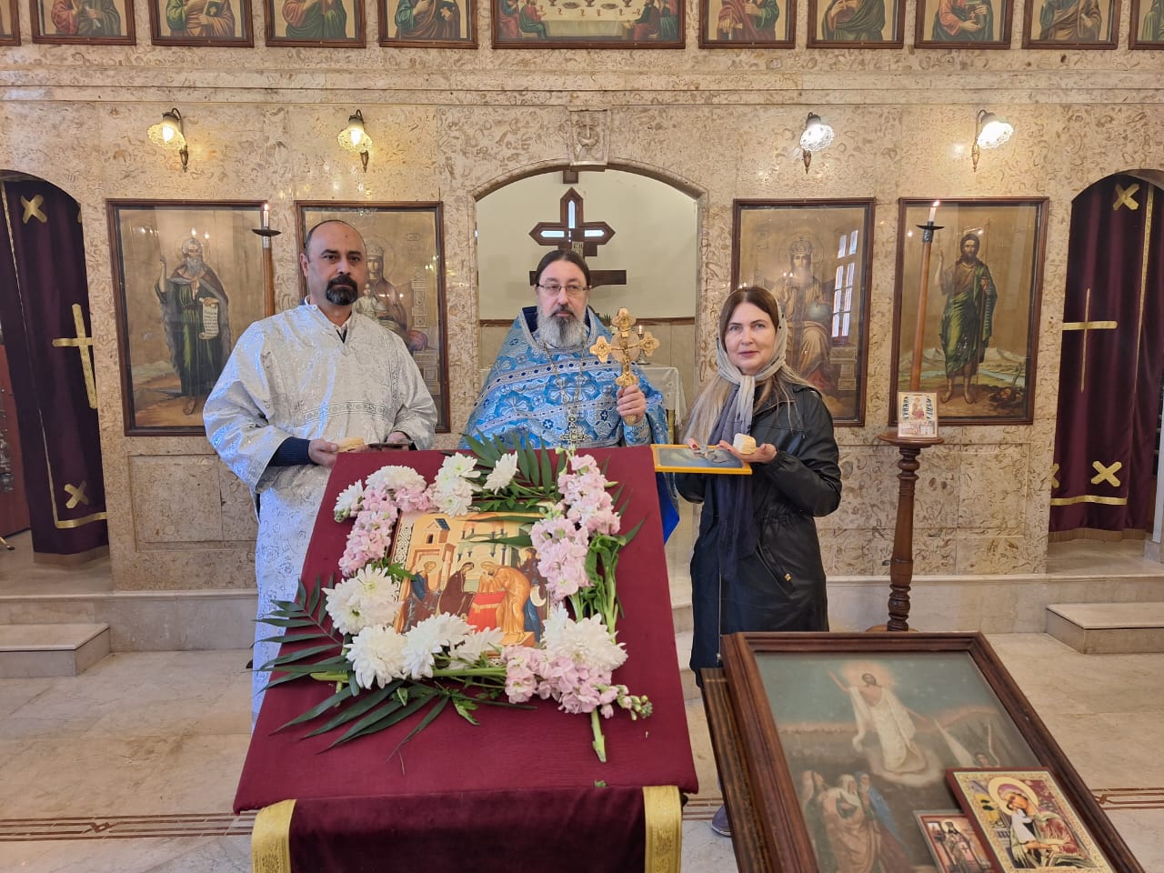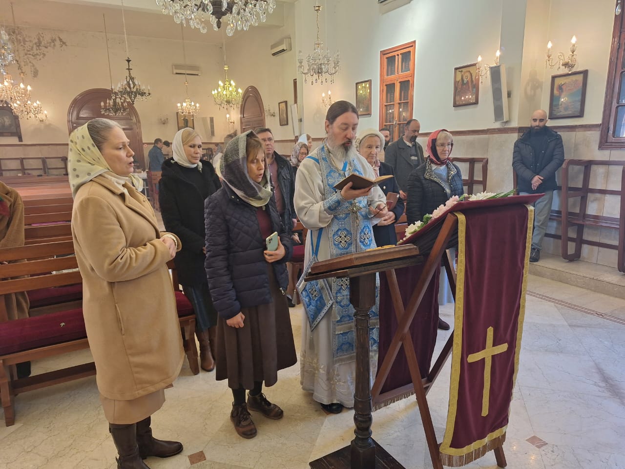 После отпуста Божественной литургии было совершено славление празднику Сретения Господня. Проповедь на тему воскресного евангельского чтения произнёс архимандрит Филипп. Затем настоятель поздравил с прошедшим Днём рождения постоянных прихожан Подворья Иосифа Эль-Хури и Наталью Баальбаки, вручил им памятные подарки и возгласил многолетие.