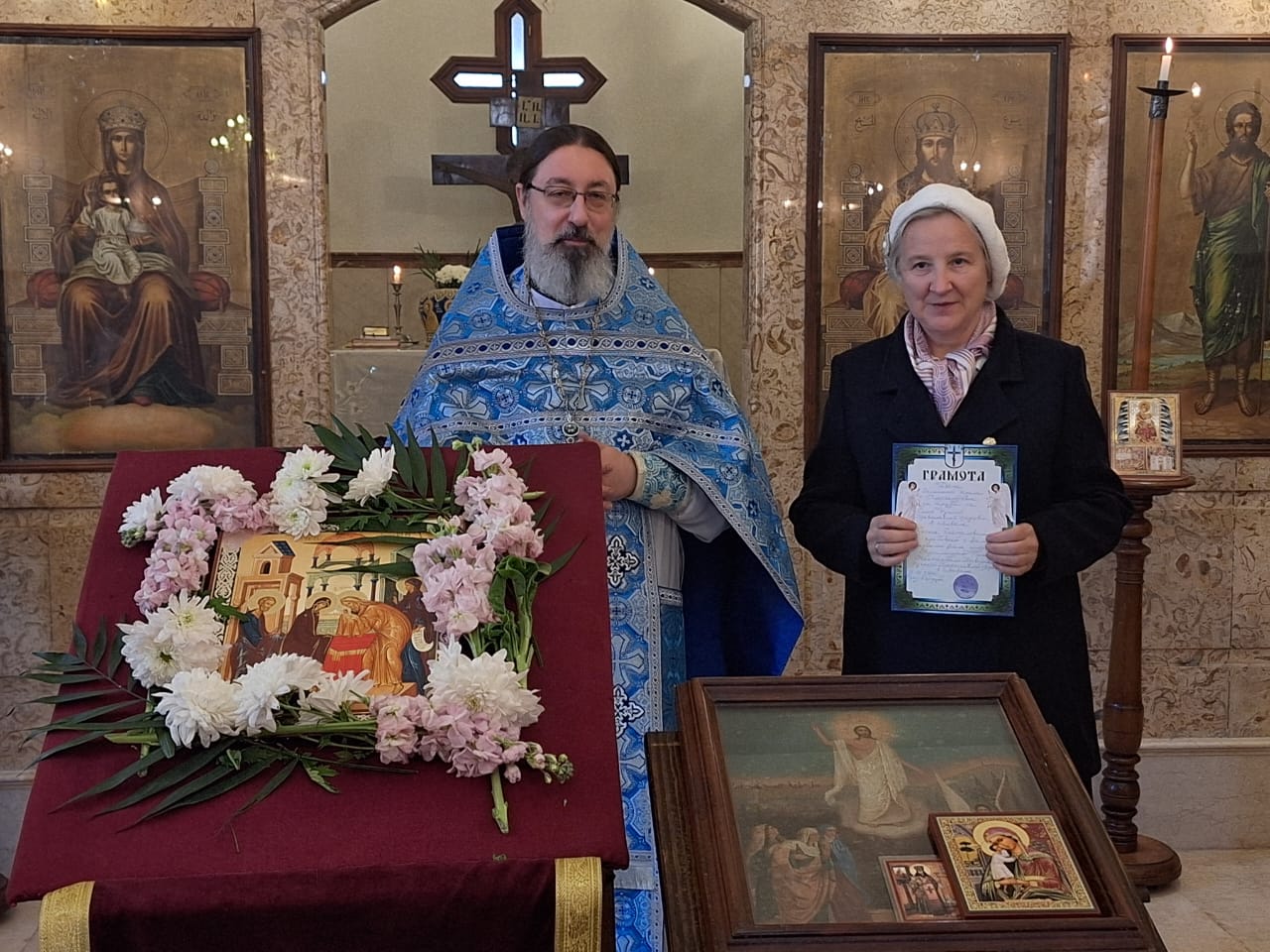 Также настоятель вручил Благодарственную грамоту члену церковного совета общины Зелениной И.А. за многолетние труды и помощь Подворью Русской Православной Церкви в Ливане.