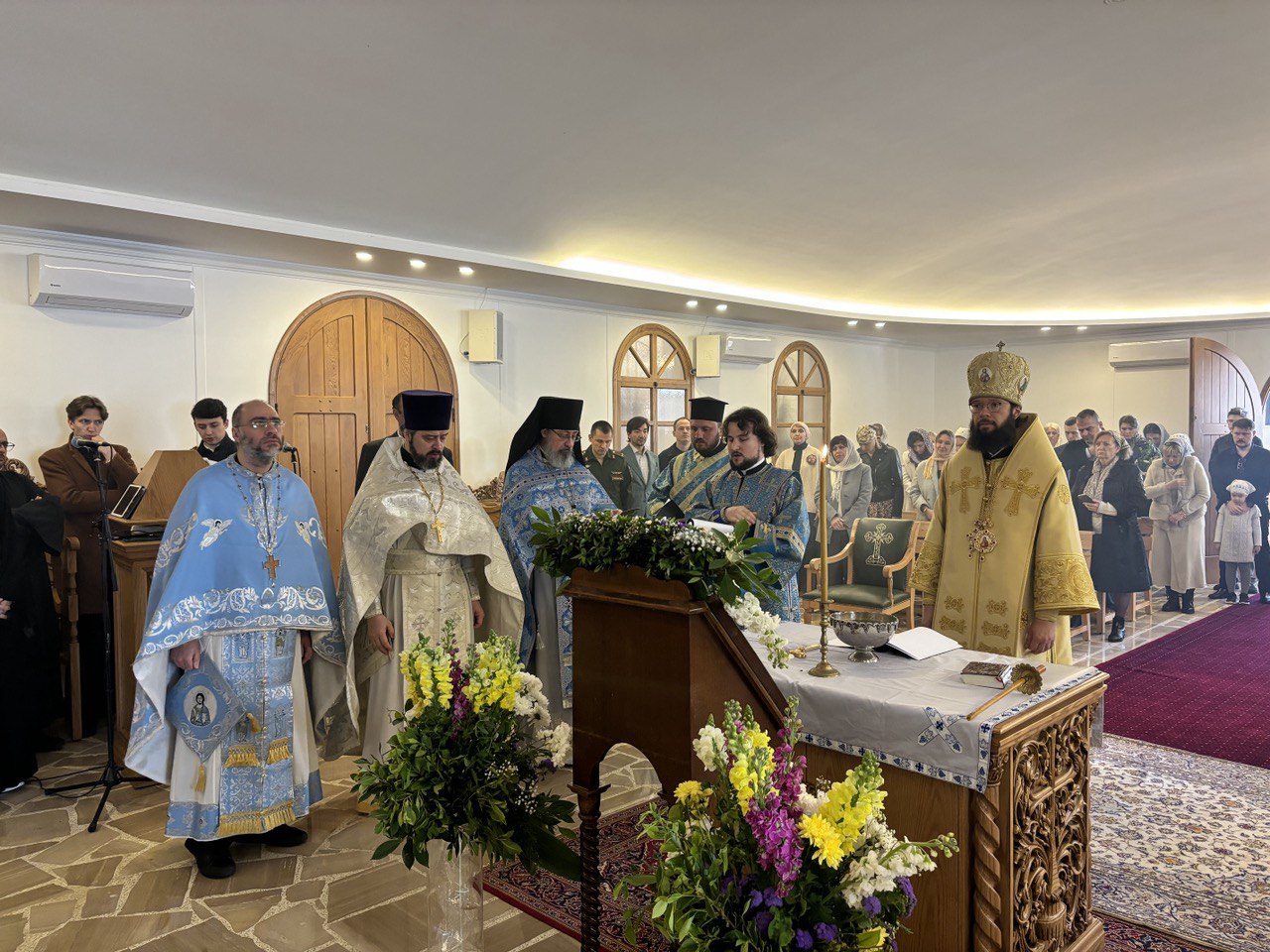 Архиереям сослужили: представитель Патриарха Московского и всея Руси при Патриархе Великой Антиохии и всего Востока, настоятель Подворья Русской Православной Церкви в Бейруте архимандрит Филипп (Васильцев); настоятель подворья Православной Церкви Чешских земель и Словакии в Москве архимандрит Серафим (Шемятовский); заместитель председателя ОВЦС протоиерей Игорь Якимчук, духовенство Антиохийского и Московского Патриархатов.