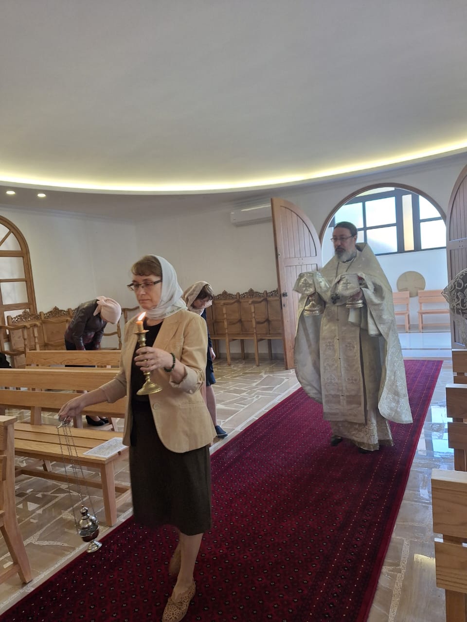 В субботу, 6 апреля, 3-й Седмицы Великого Поста в храме Благовещения Пресвятой Богородицы в Жаль Эль Диб была совершена Божественная литургия. Богослужение совершил архимандрит Филипп. На сугубой ектении были вознесены особые прошения, настоятель Подворья прочитал молитву о Святой Руси.