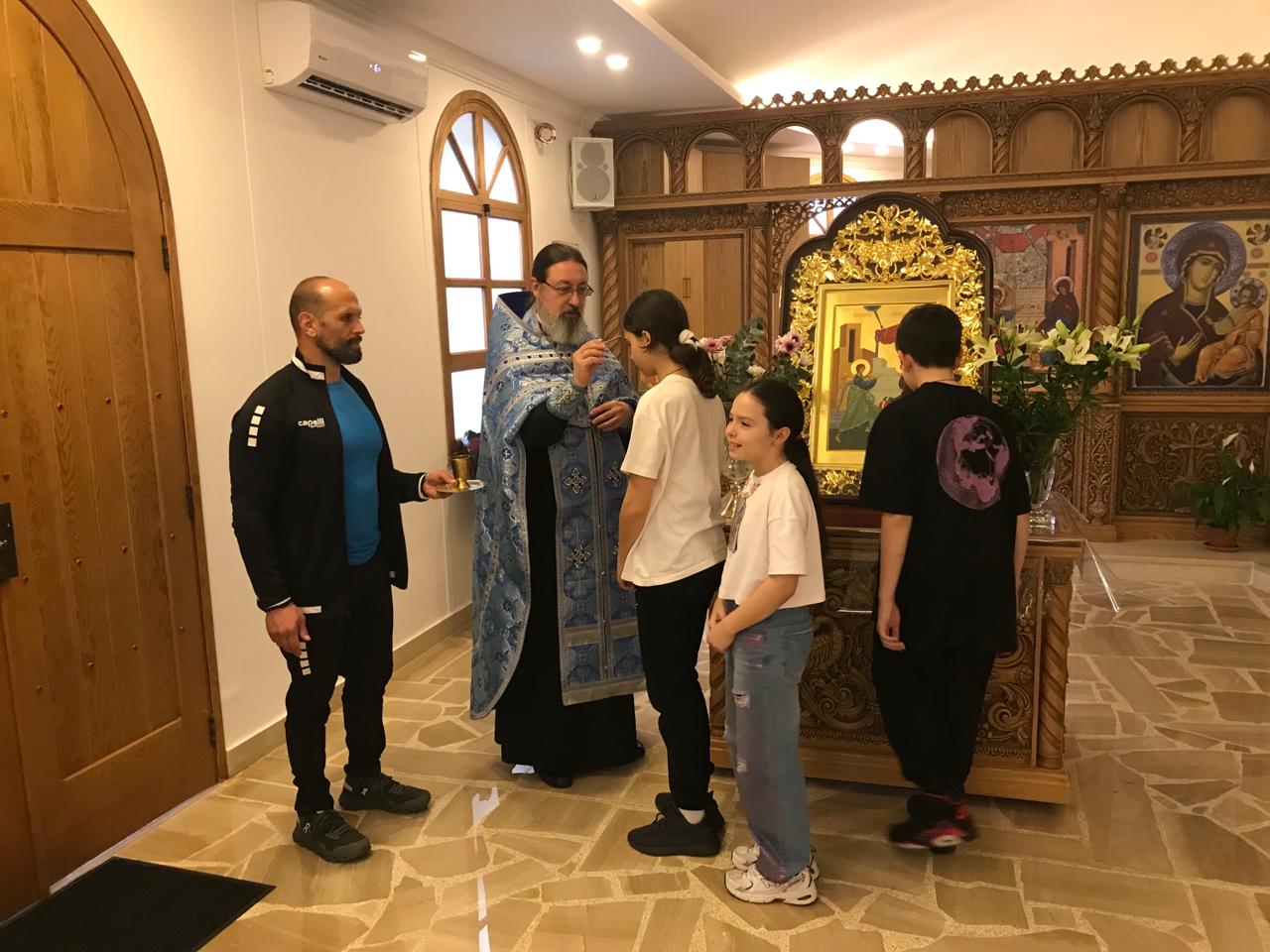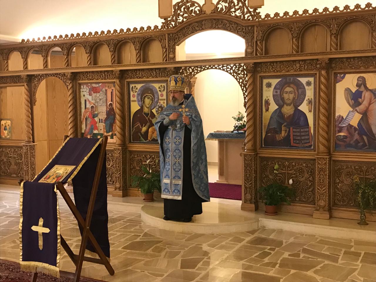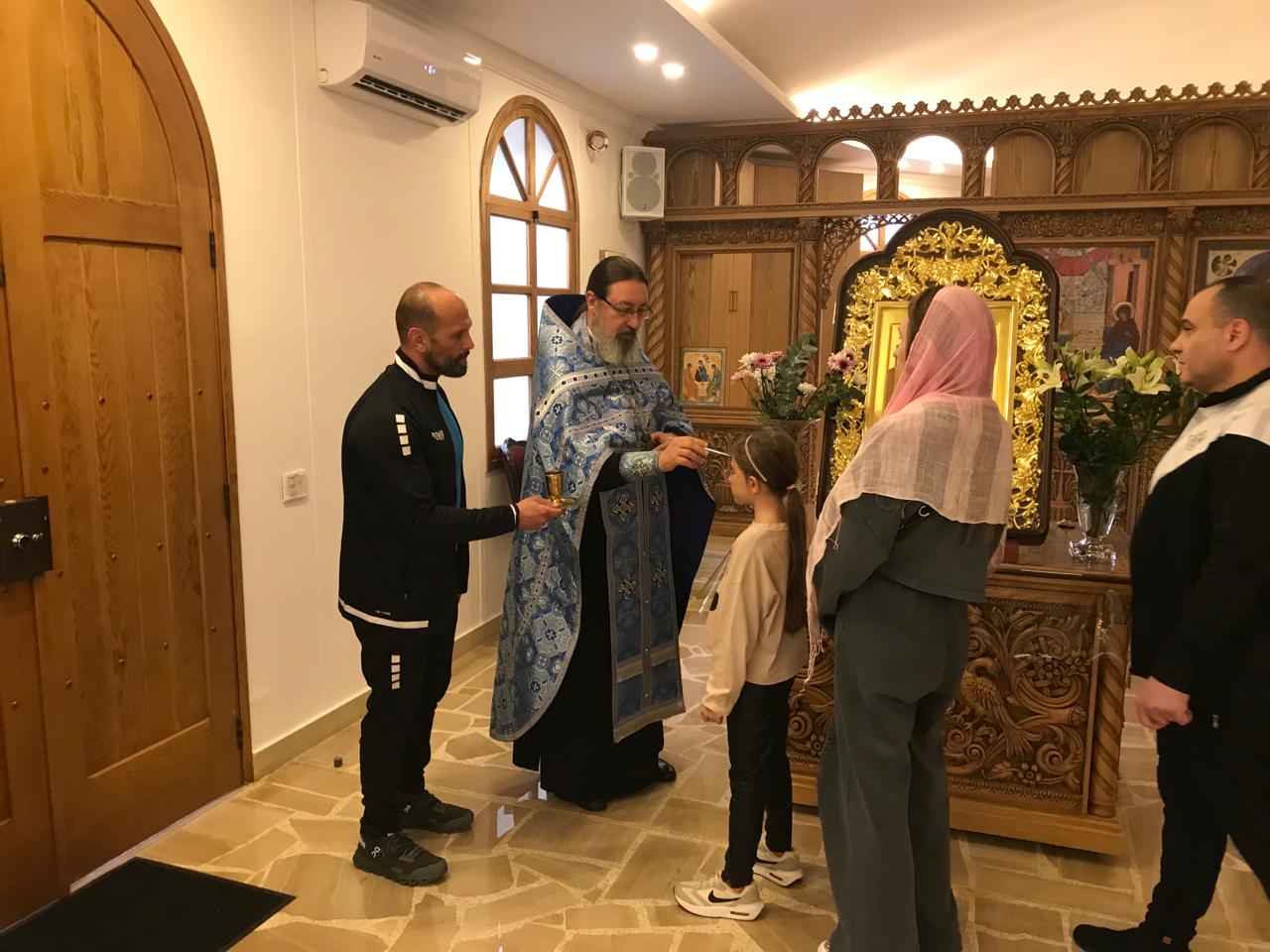 В субботу, 6 апреля, накануне престольного праздника в храме Благовещения Пресвятой Богородицы была совершена Воскресная вечерня. Богослужение совершил архимандрит Филипп . После отпуста Вечерни настоятель Подворья произнёс проповедь на тему праздника и помазал прихожан елеем.