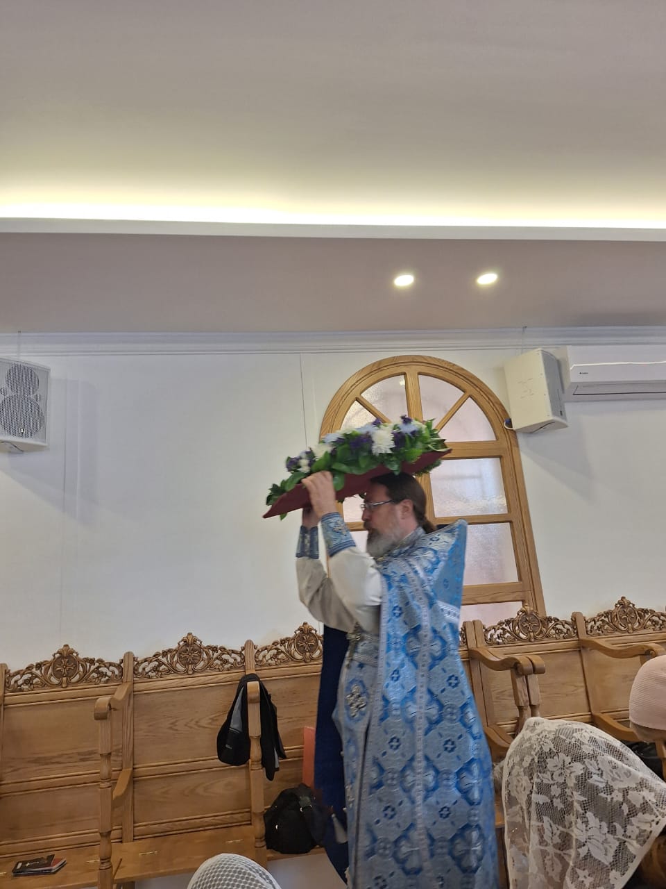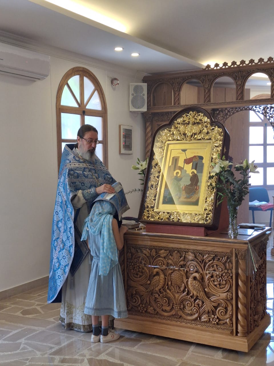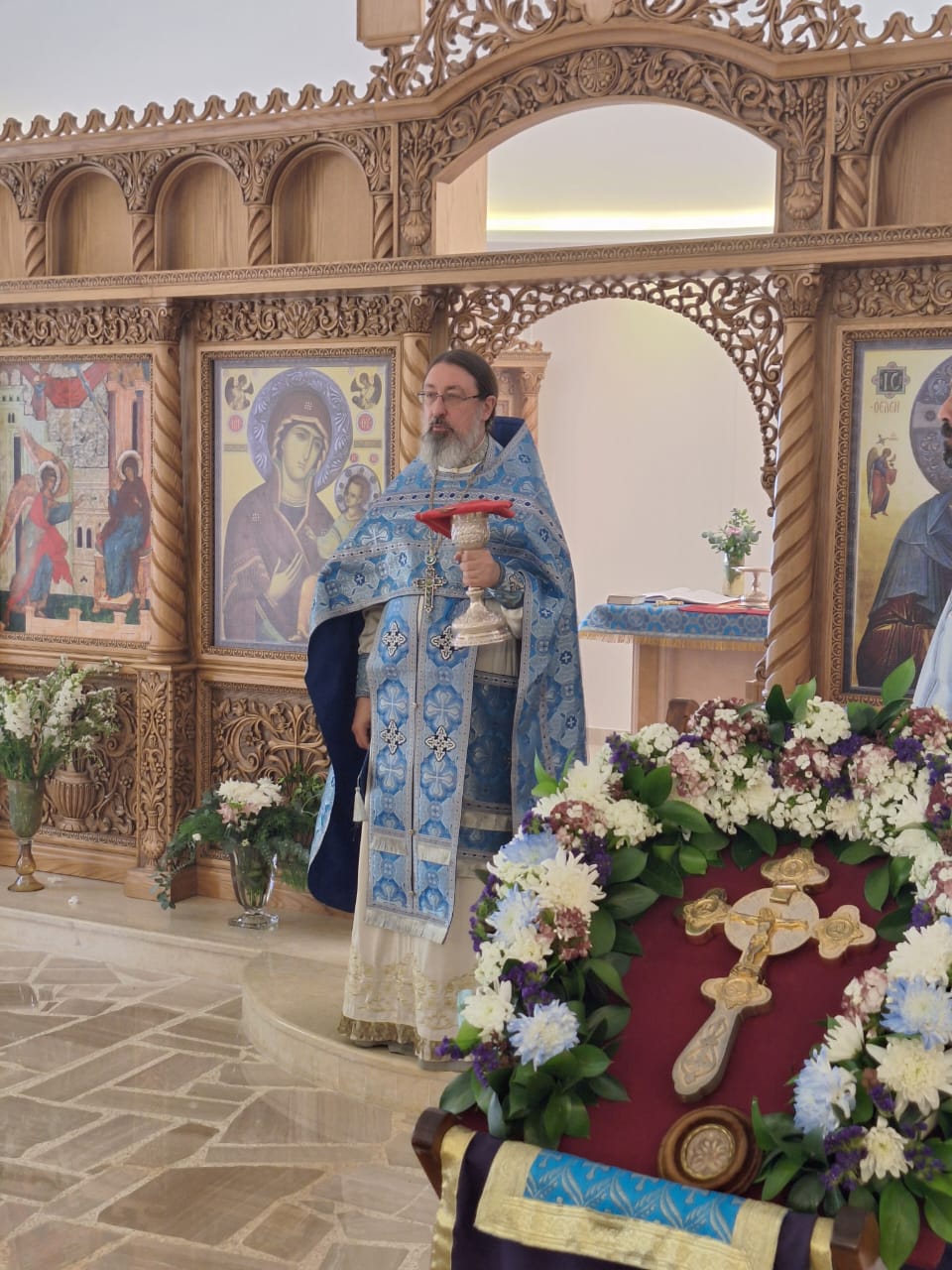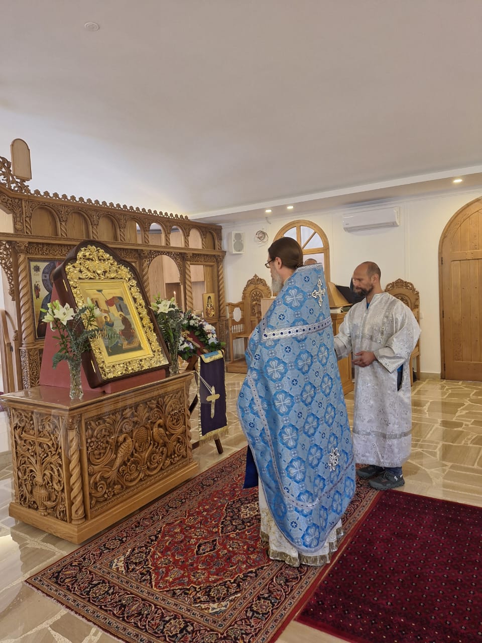 На сугубой ектении были вознесены особые прошения, настоятель Подворья прочитал молитву о Святой Руси. После отпуста Божественной литургии был совершён Чин освящения новосозданной иконы Благовещения Пресвятой Богородицы, средства на которую были собраны общиной Подворья. Затем был совершён праздничный Крестный ход. Проповедь на тему праздника произнёс архимандрит Филипп. Затем настоятель поздравил с прошедшим Днём Ангела постоянных прихожанок Подворья Светлану Азар, Светлану Кожевникову-Хурани, Светлану Галак, вручил им памятные подарки и возгласил многолетие.