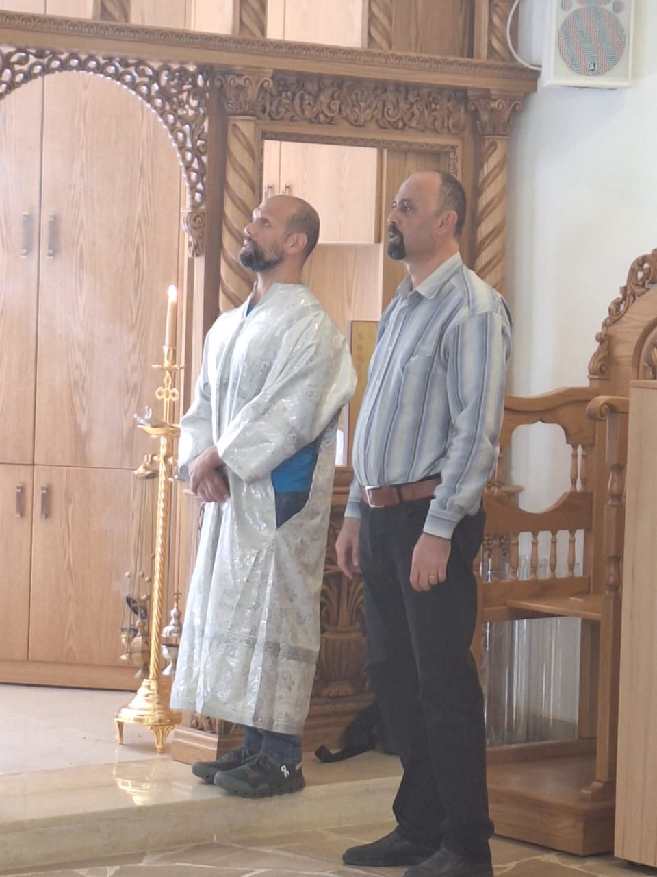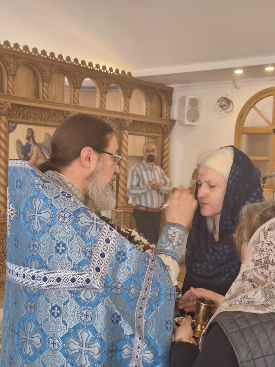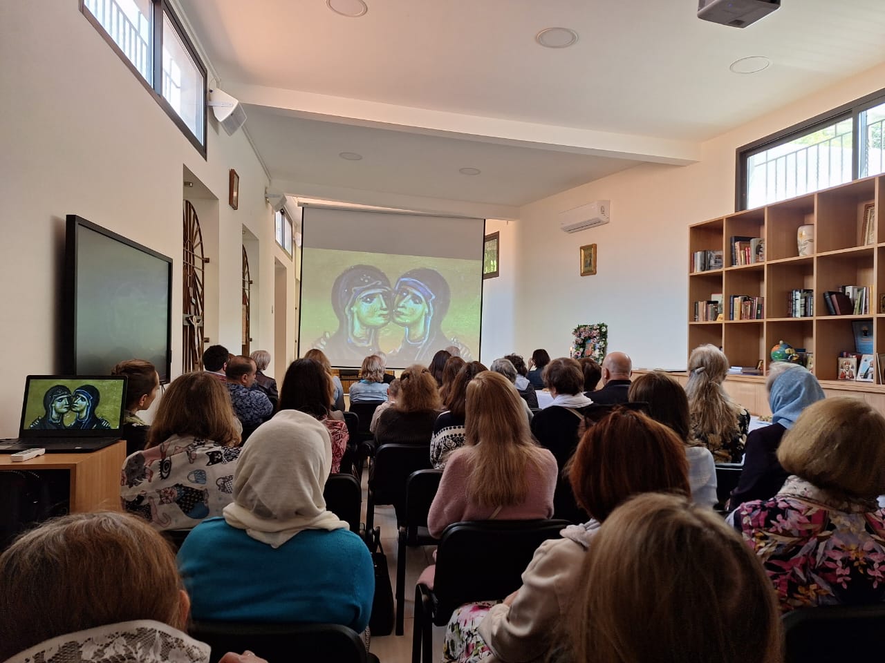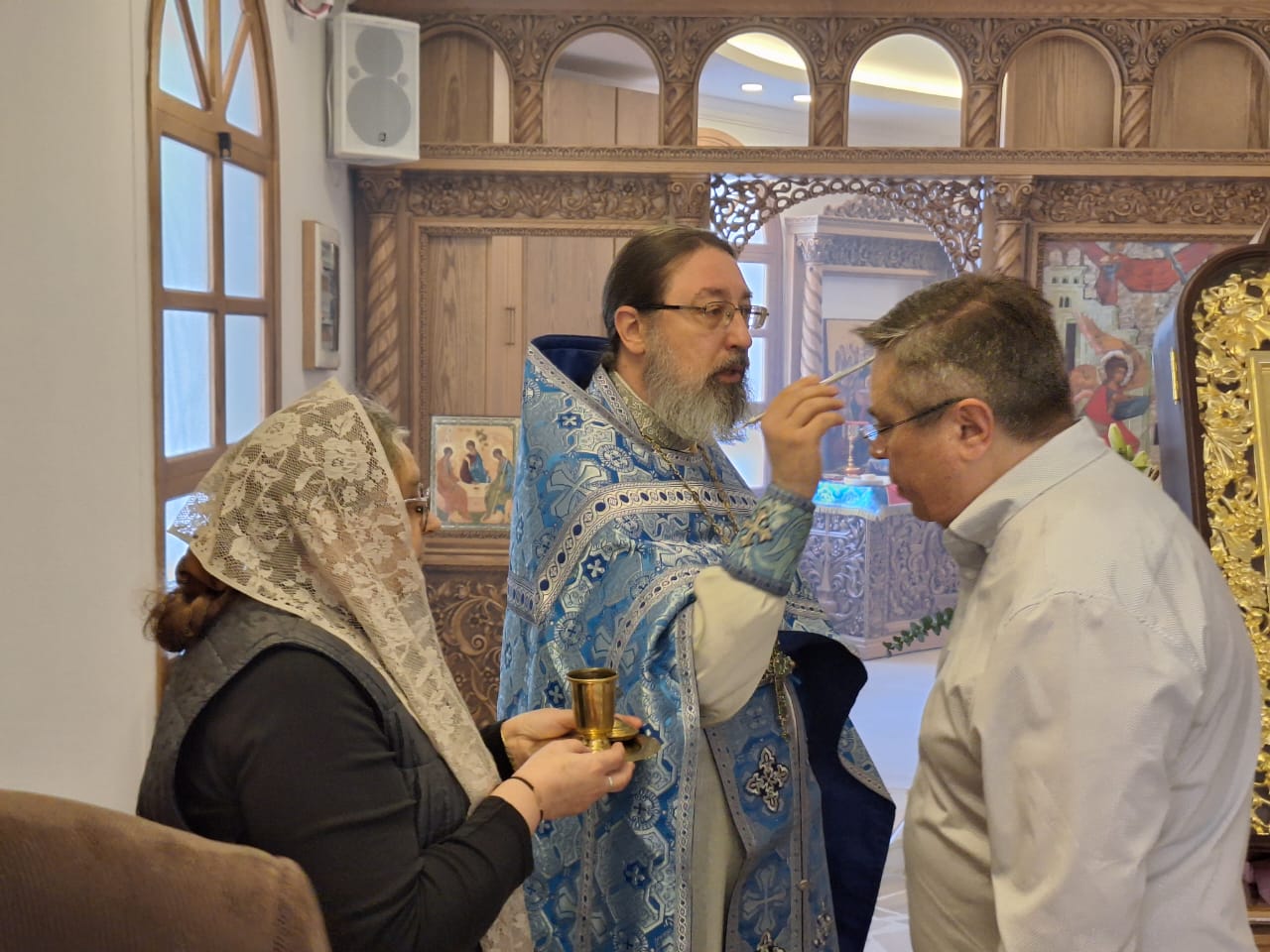 После окончания богослужения в приходском зале храма состоялась демонстрация фильма о празднике Благовещения Пресвятой Богородицы и братская трапеза.
