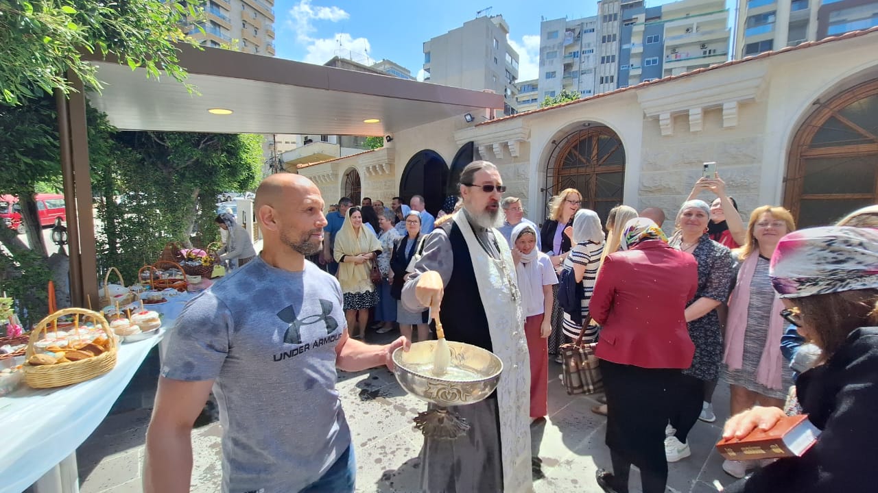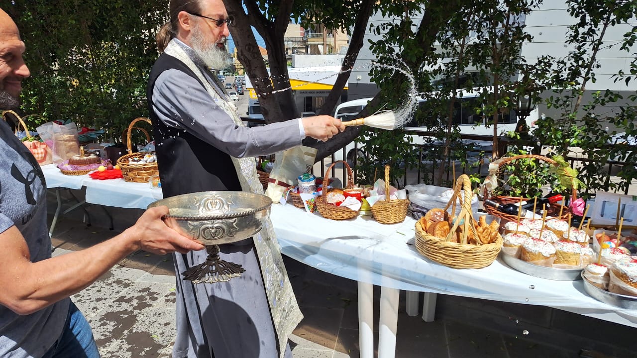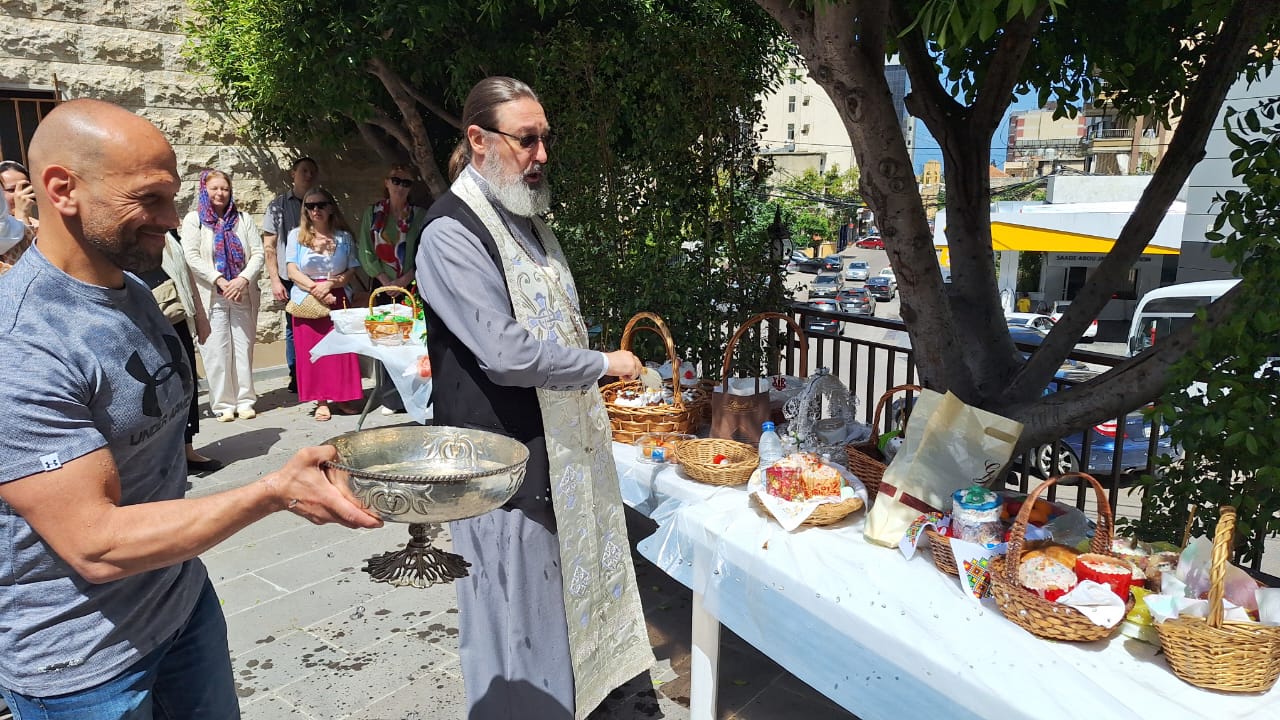 Затем во дворе храма архимандрит Филипп совершил Чин освящения пасхальных пасок и куличей.