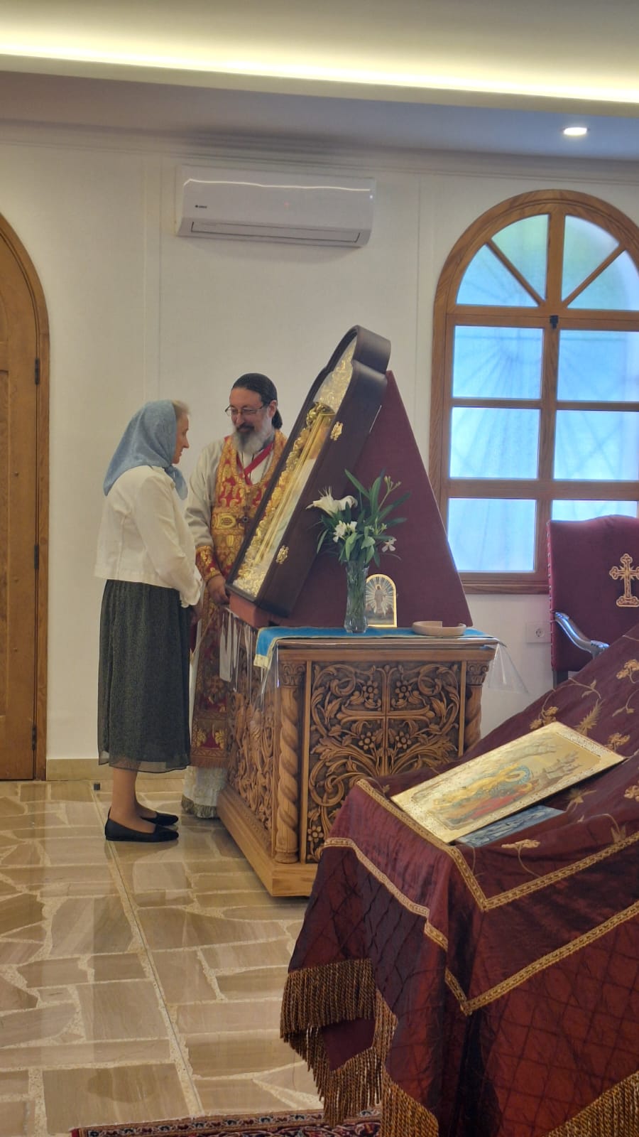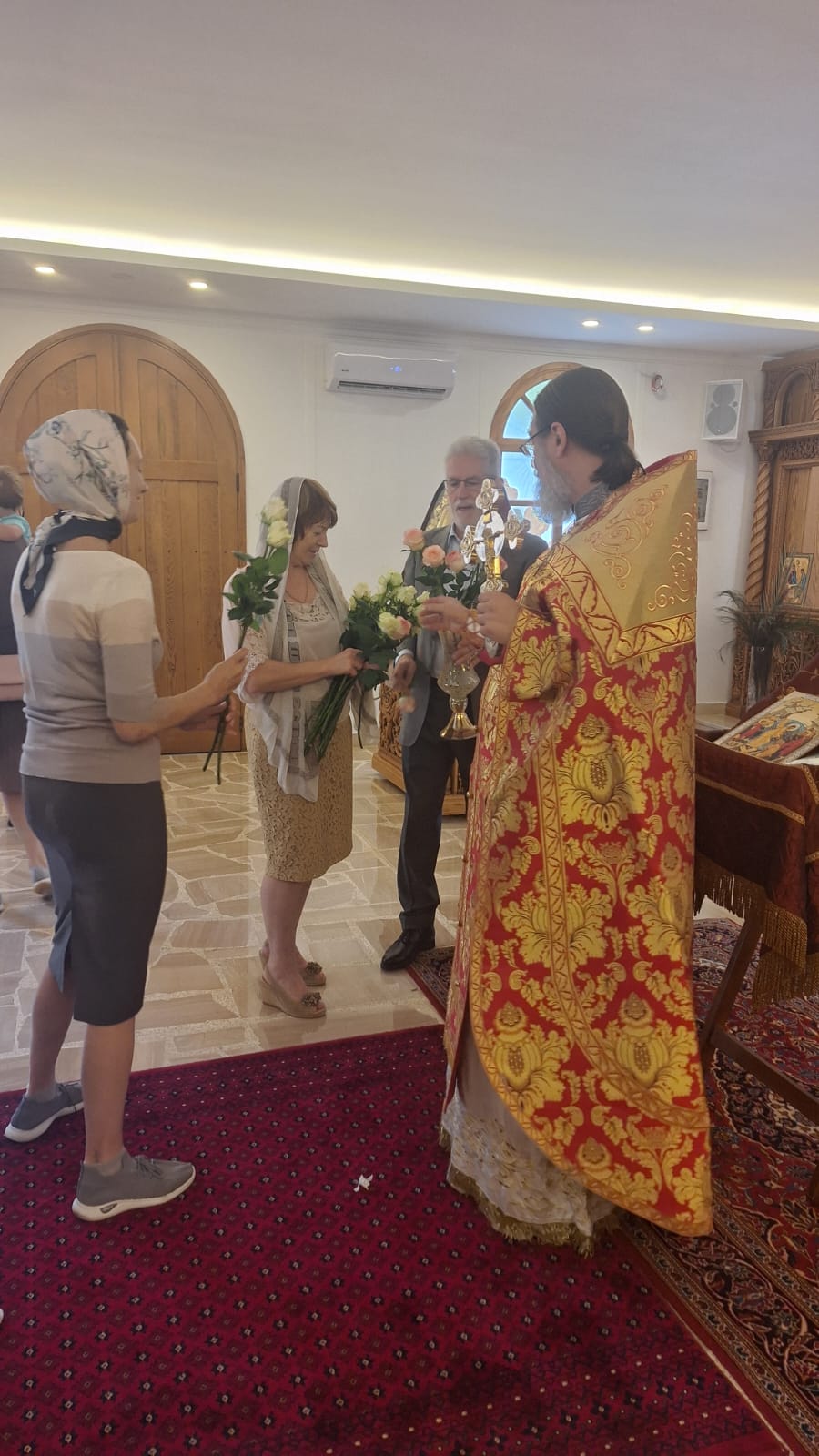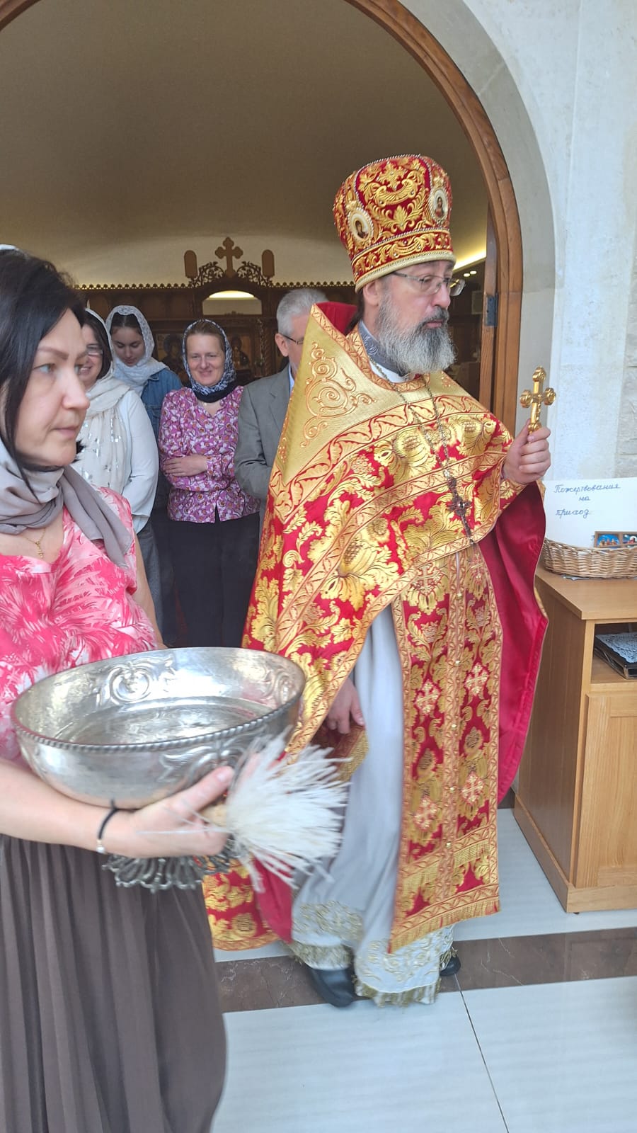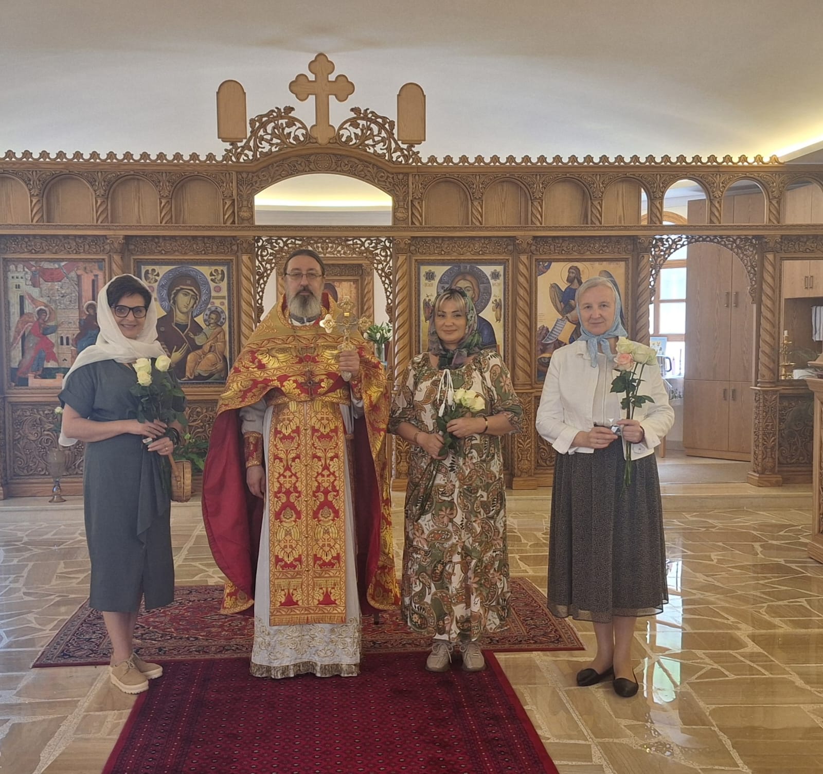 Также архимандрит Филипп поздравил всех прихожанок Подворья с наступающим праздником святых жён-мироносиц и подарил каждой по розе. После окончания богослужения в приходском зале храма состоялась братское чаепитие.