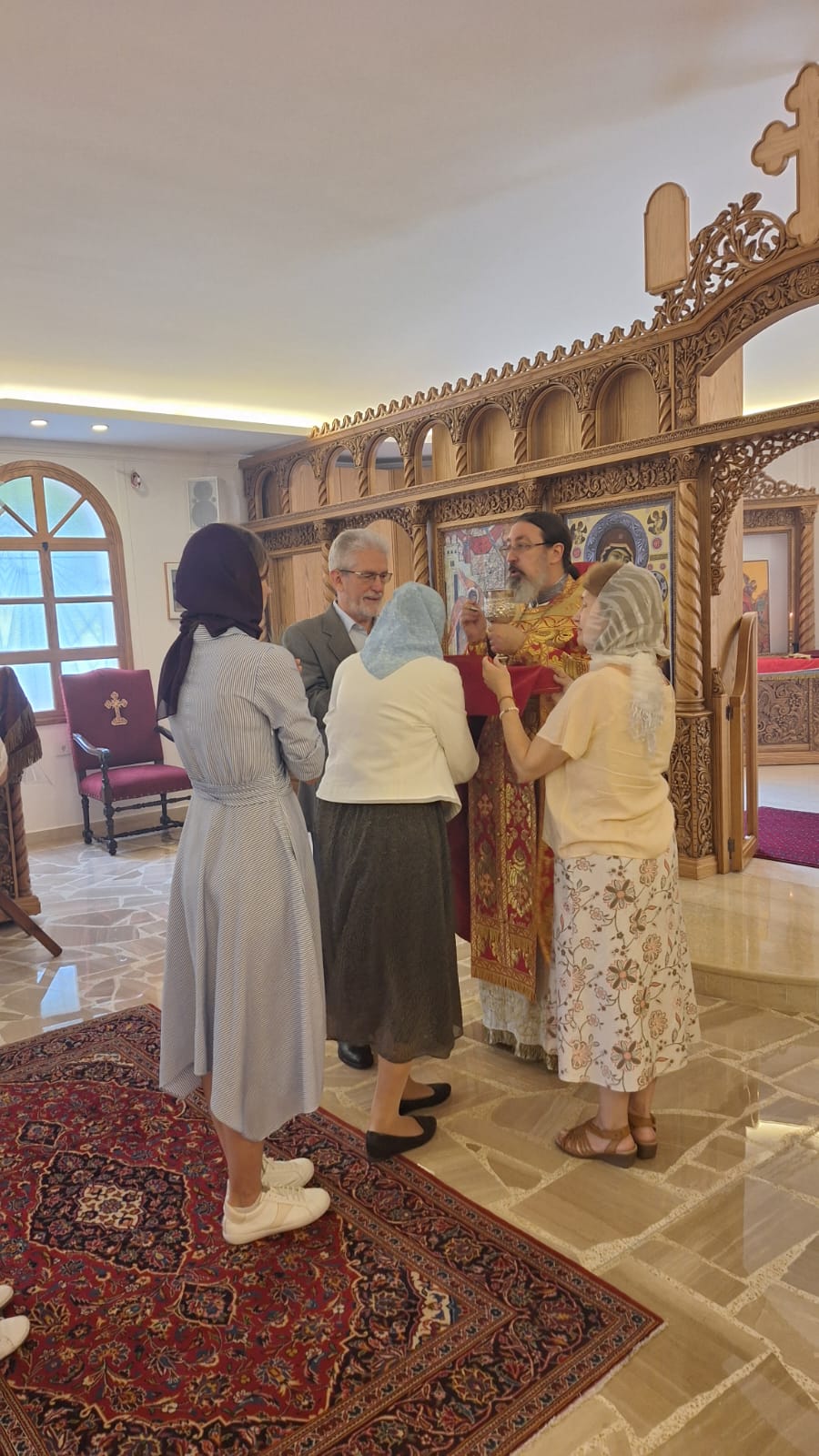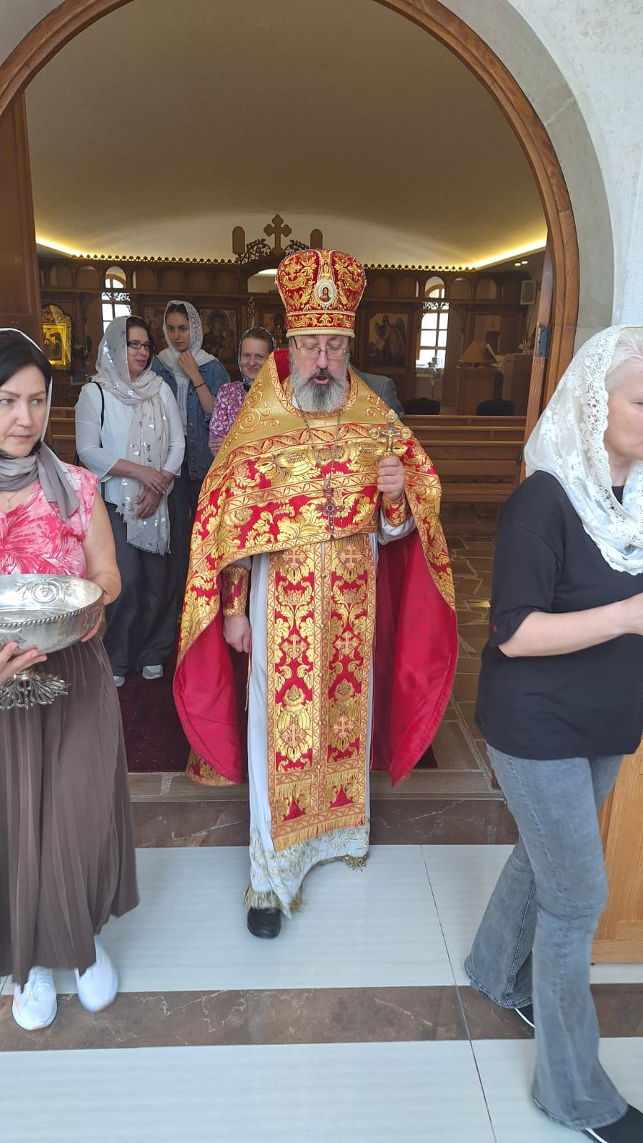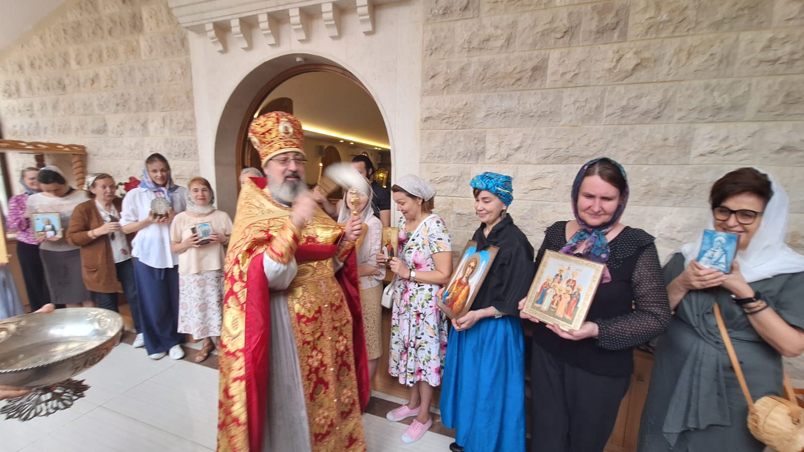 После отпуста Божественной литургии был совершён Пасхальный Крестный ход. Проповедь на тему праздника произнёс архимандрит Филипп. Затем настоятель поздравил с днём Ангела постоянных прихожанок Подворья Ирину Зеленину, Ирину Салху и Ирину Хаддат и вручил им памятные подарки.
