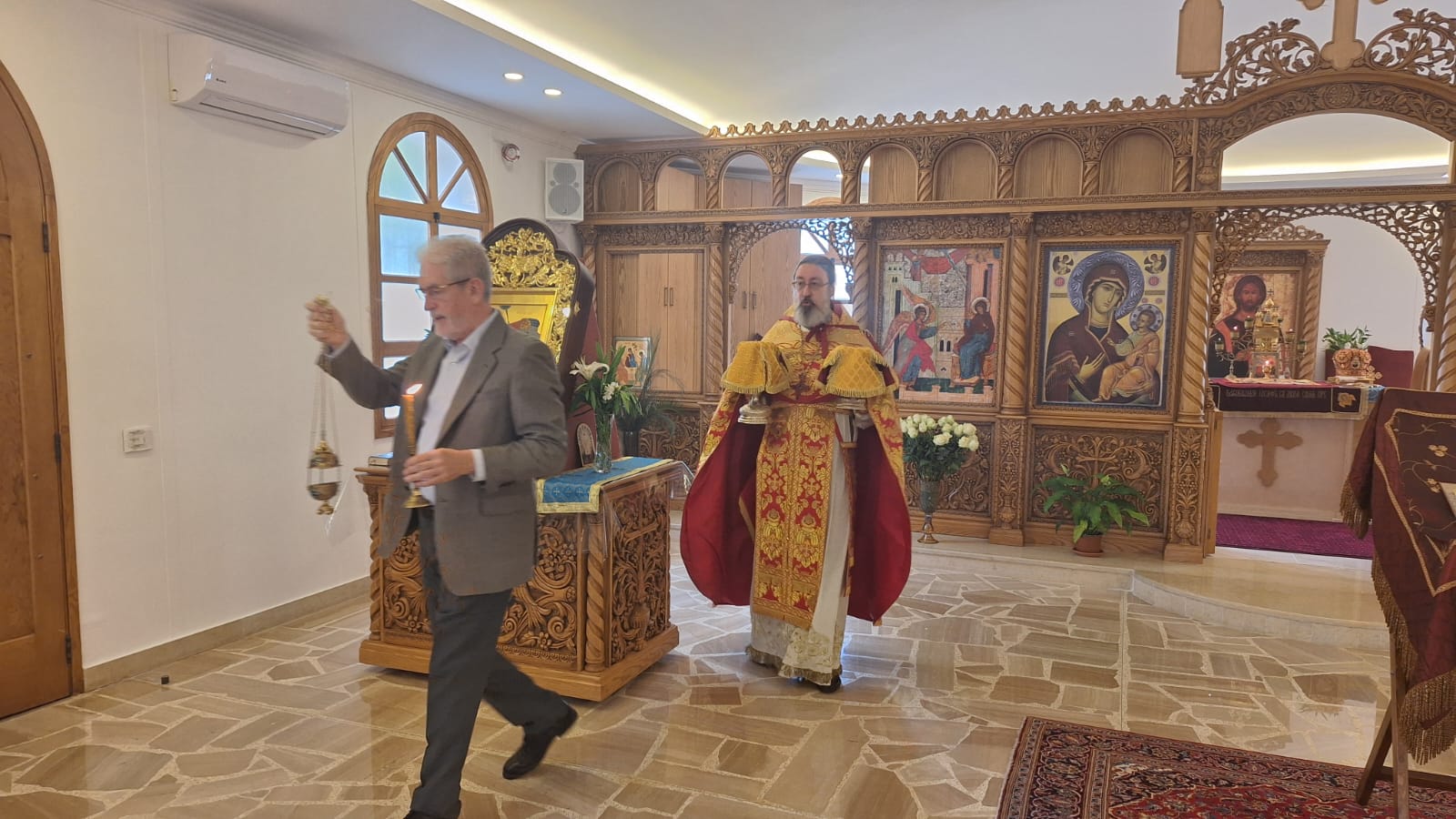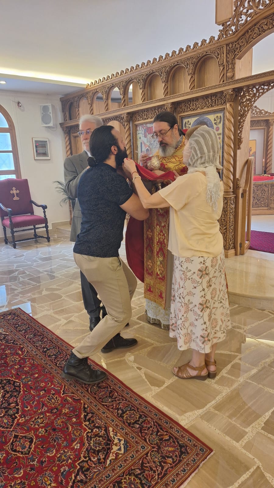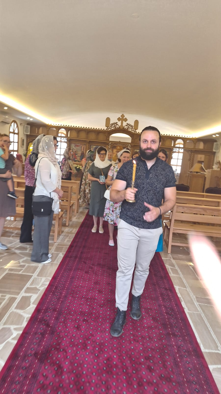 После отпуста Божественной литургии был совершён Пасхальный Крестный ход. Проповедь на тему праздника произнёс архимандрит Филипп. Затем настоятель поздравил с днём Ангела постоянных прихожанок Подворья Ирину Зеленину, Ирину Салху и Ирину Хаддат и вручил им памятные подарки.