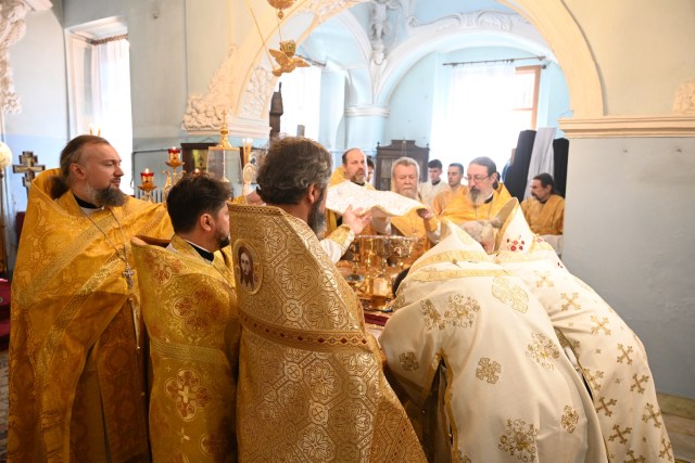 Иерархам сослужили представитель Патриарха Московского и всея Руси при Патриархе Великой Антиохии и всего Востока архимандрит Филипп (Васильцев), заместитель председателя ОВЦС протоиерей Игорь Якимчук, секретарь председателя ОВЦС иерей Николай Васин, клирики храма. Диаконский чин возглавил Патриарший архидиакон Константин Барган.