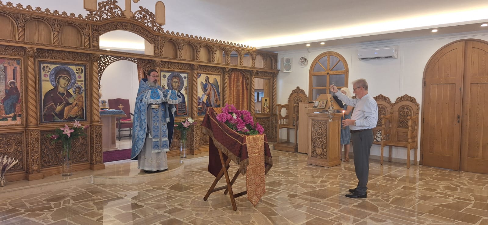 В субботу, 21 сентября, в день Великого двунадесятого праздника Рождества Пресвятой Богородицы в храме Благовещения Пресвятой Богородицы была совершена Утреня и Божественная литургия. Богослужение совершил архимандрит Филипп. На сугубой ектении были вознесены особые прошения, настоятель прочитал молитву о Святой Руси.