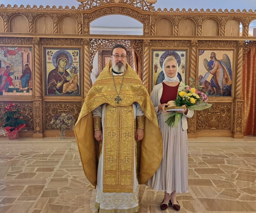 Обращаясь к молящимся перед началом молебна архимандрит Филипп пожелал членам общины Подворья помощи Божией в это трудное для всех время и Покрова и заступничества Матери Божией. Затем настоятель поздравил с днём рождения казначея Подворья Светлану Ариди, вручил ей памятные подарки и возгласил многолетие.