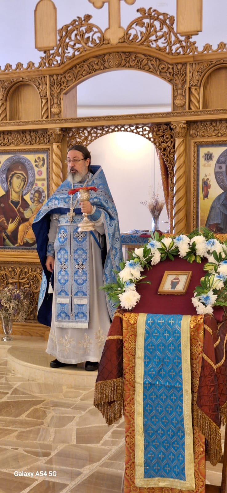 После отпуста Божественной литургии было совершено славление празднику Покрова Пресвятой Богородицы. Проповедь на тему праздника произнёс настоятель Подворья.