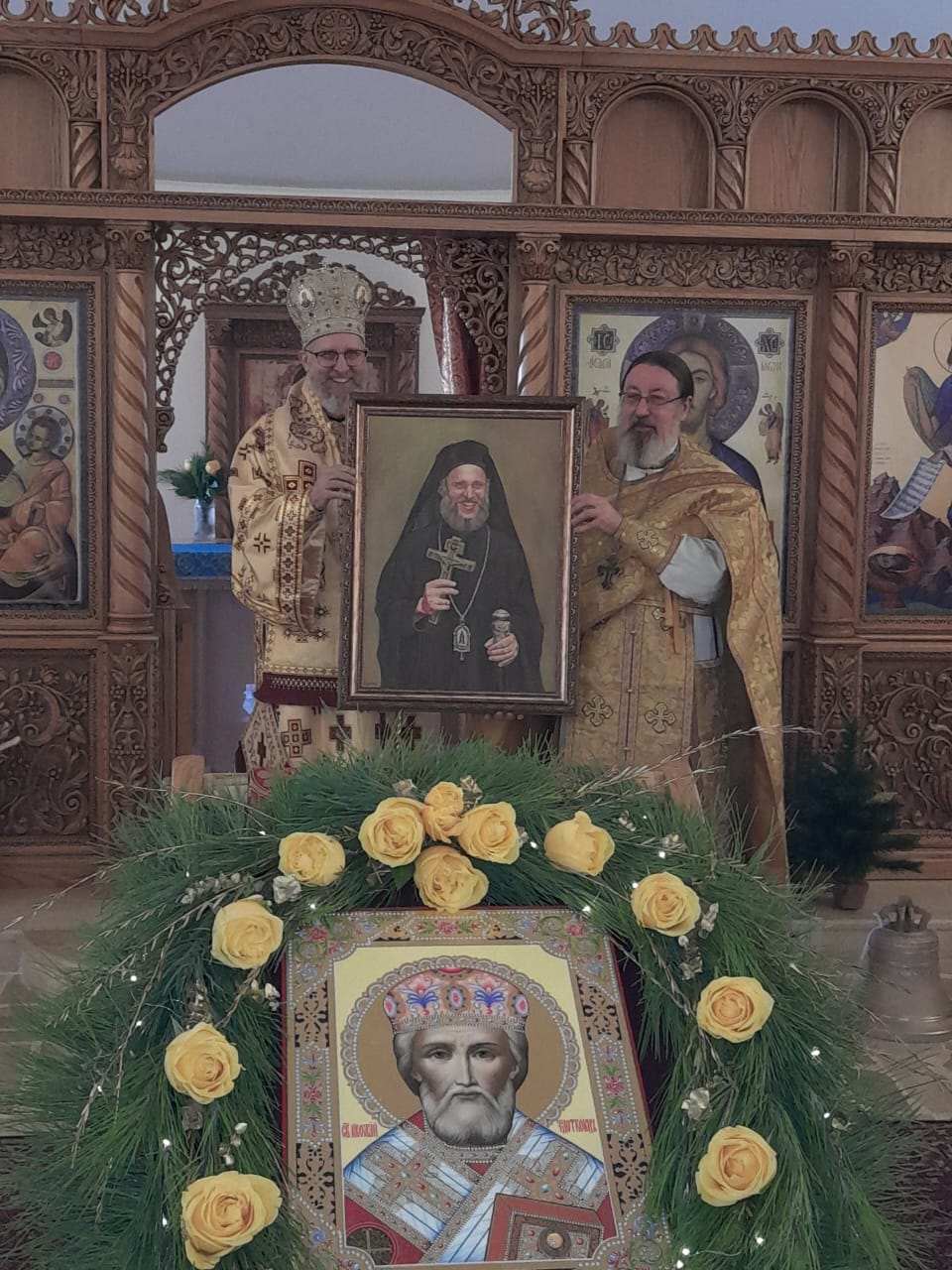 В своем ответном слове архимандрит Филипп поблагодарил Владыку Силуана за сегодняшнее богослужение, освящение колоколов для звонницы храма и за его неизменную любовь и заботу об общине Подворья Русской Православной Церкви. В знак благодарности и на память о сегодняшнем богослужении настоятель преподнес Владыке Силуану его портрет, выполненный прихожанкой Подворья и воспитанницей Воскресной школы Корин Стефан.