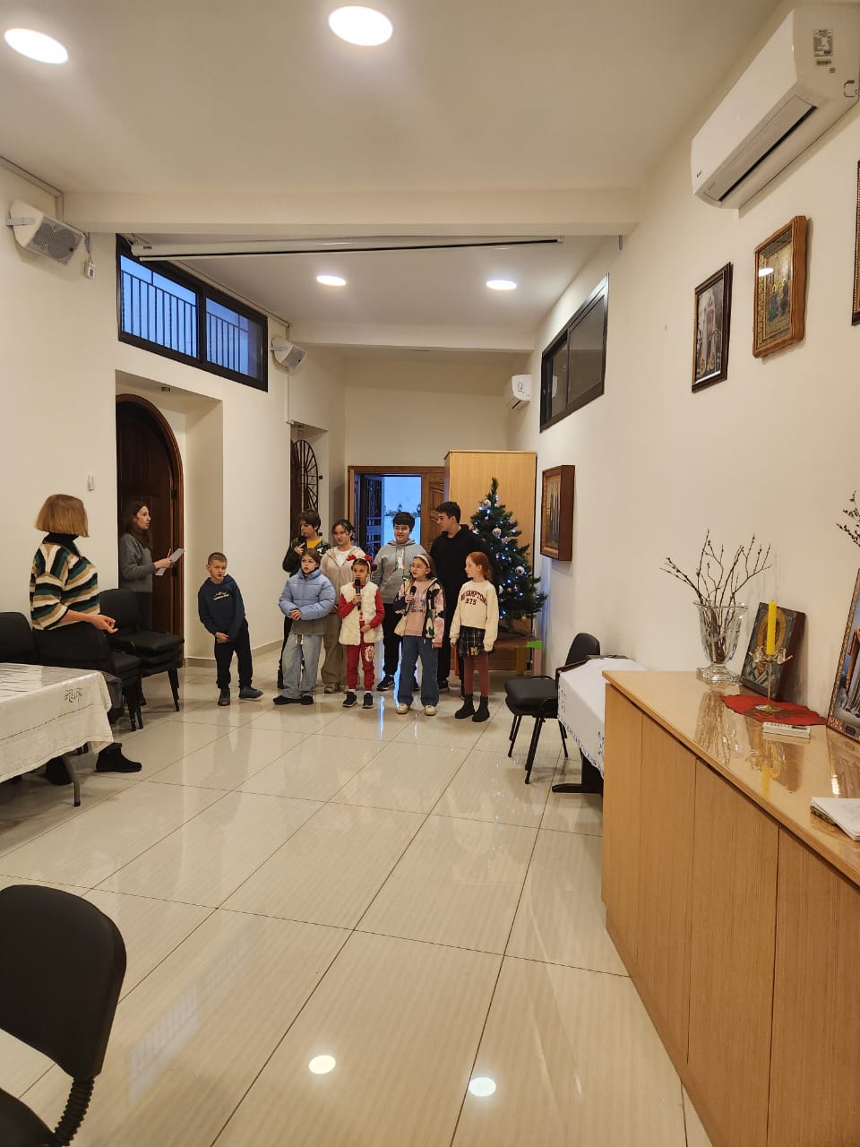 В субботу, 21 декабря, школа «Исток» при Подворье Русской Православной Церкви продолжила свои занятия. Перед началом занятий архимандрит Филипп совершил Чин освящения иконы святителя Николая Чудотворца, написанной прихожанкой Подворья Ольгой Хабр и передал образ учащим и учащимся Воскресной школы. Затем настоятель Подворья провел урок по основам христианского вероучения.