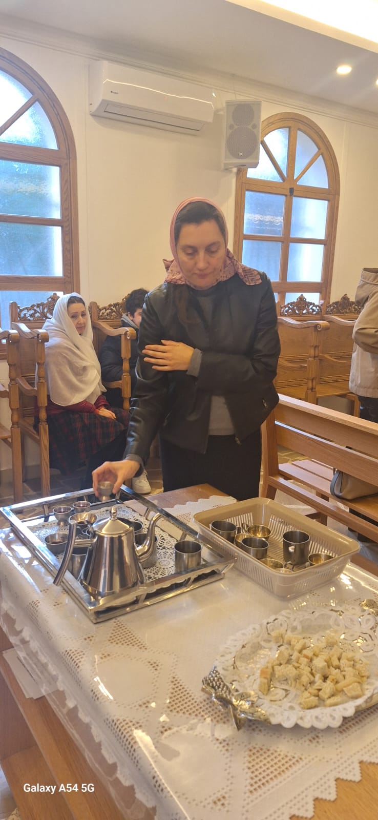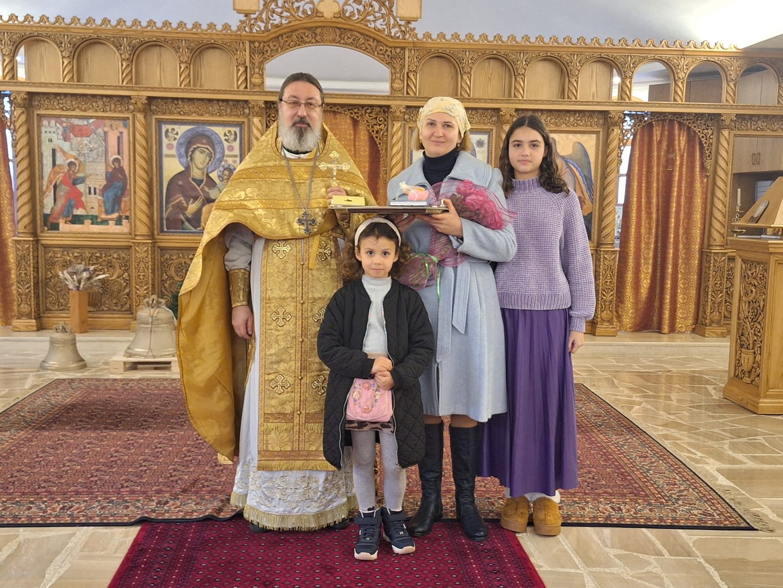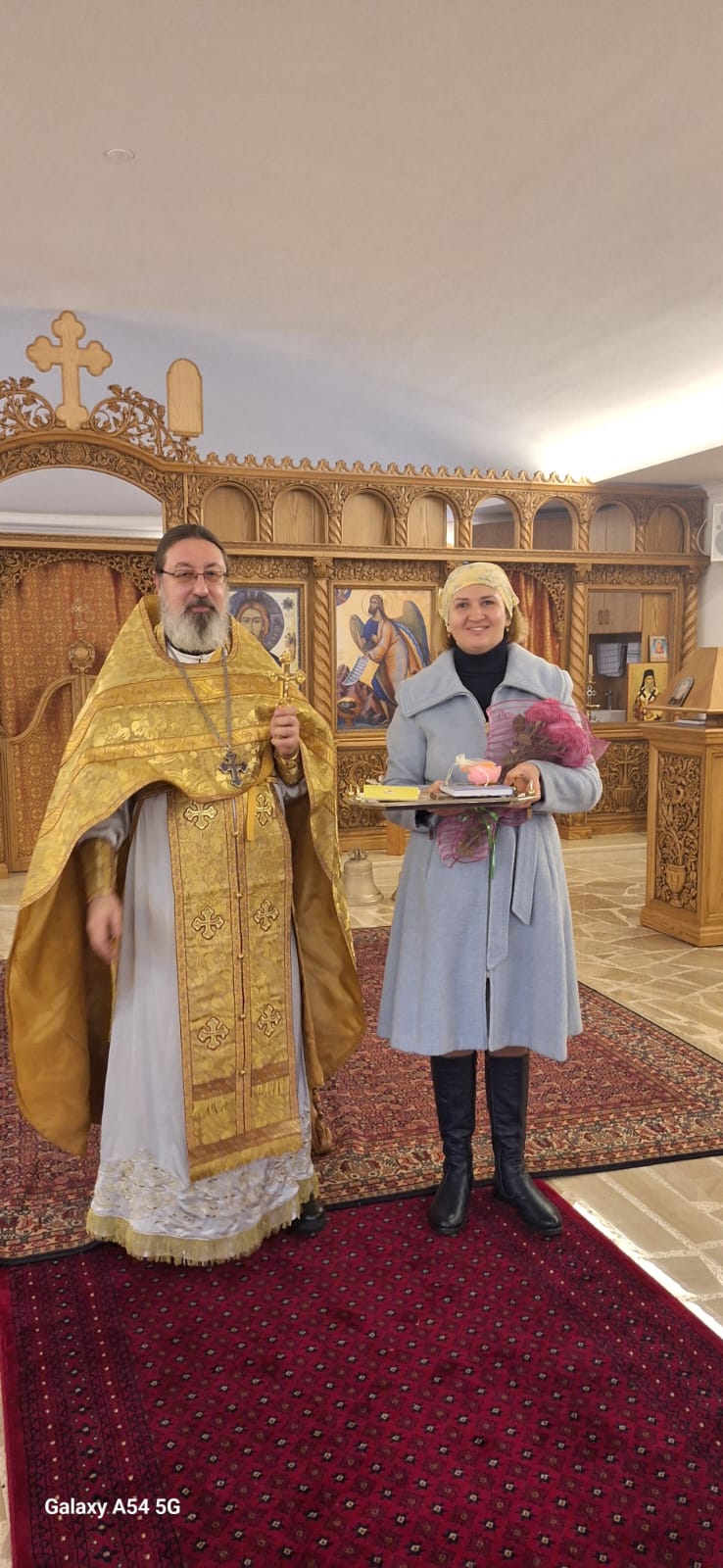 Затем настоятель поздравил с прошедшим Днем рождения постоянную прихожанку и сотрудницу Подворья Юлию Масоуд, вручил ей памятные подарки и возгласил многолетие.
