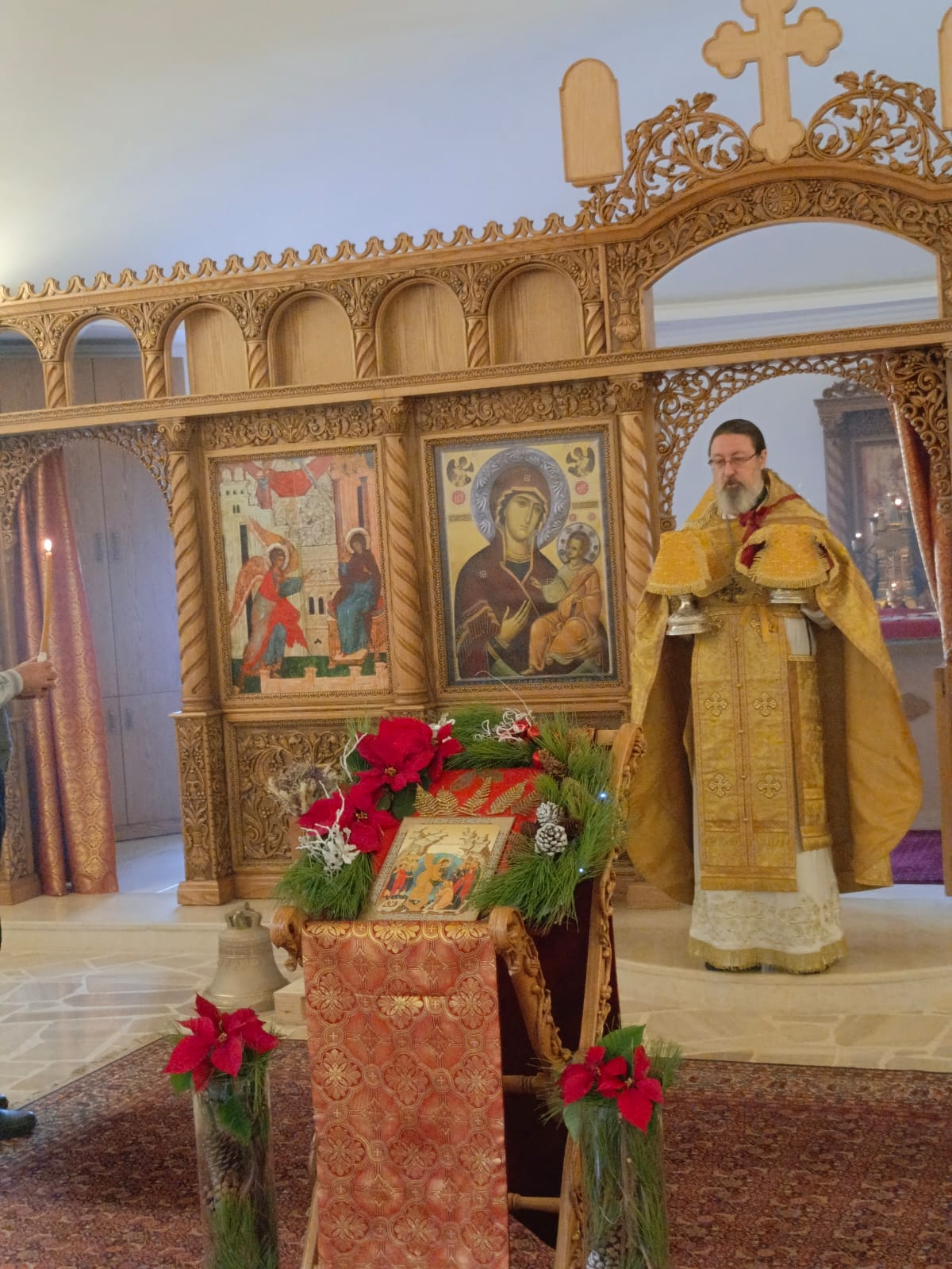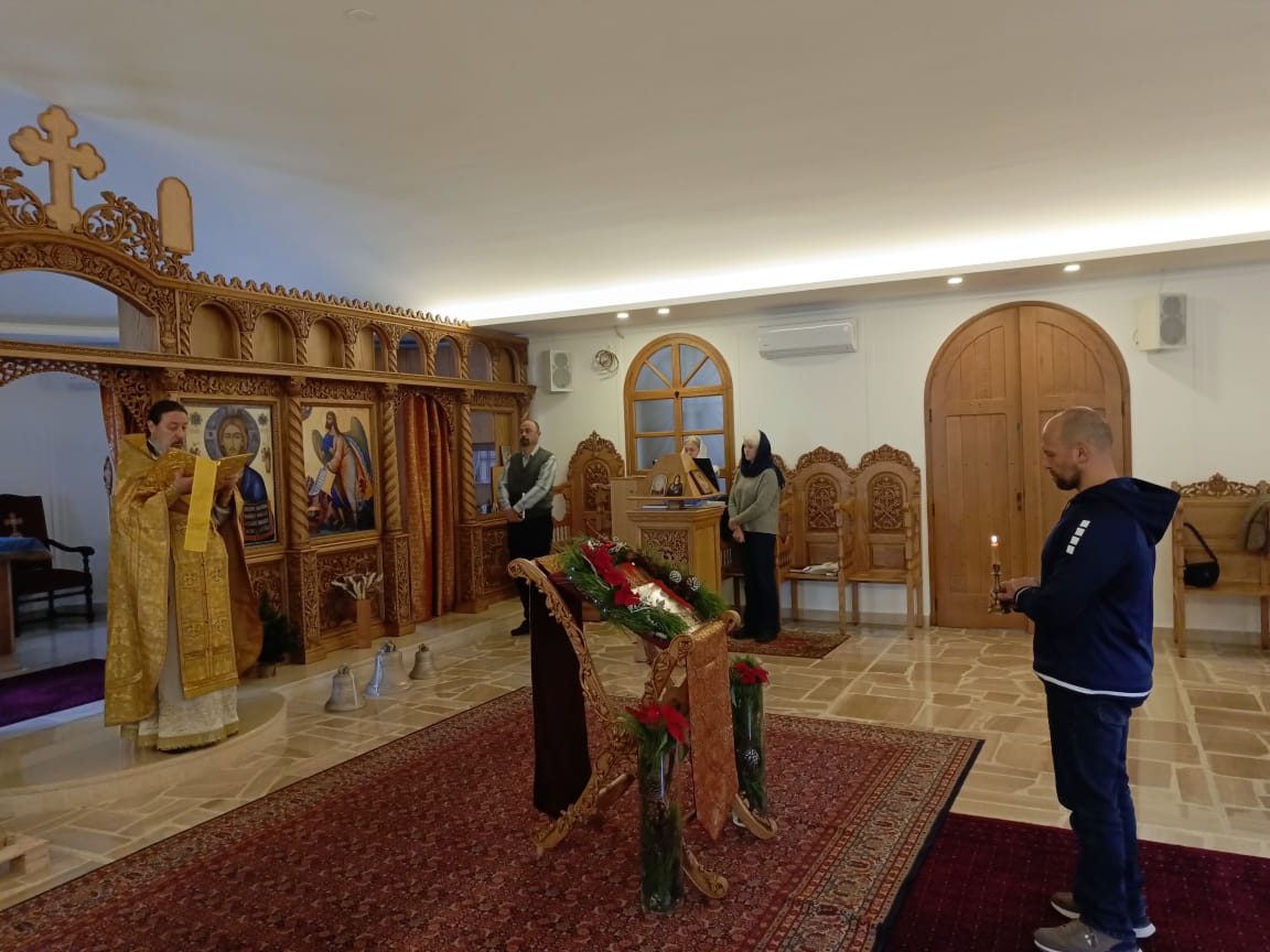 В воскресенье, 5 января, в Неделю перед Рождеством Христовым, святых отец в храме Благовещения Пресвятой Богородицы была совершена Божественная литургия. Богослужение совершил архимандрит Филипп. На сугубой ектении были вознесены особые прошения, настоятель прочитал молитву о Святой Руси.