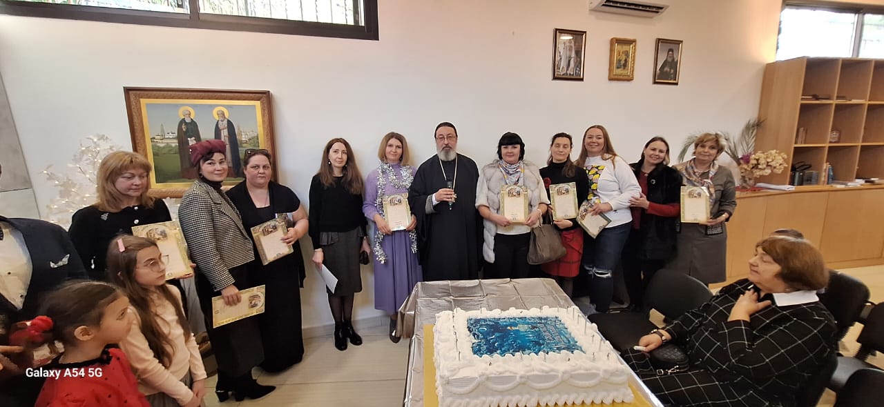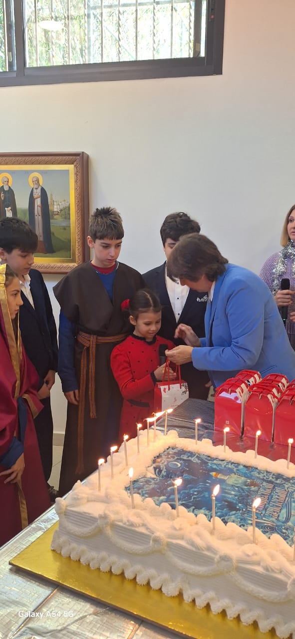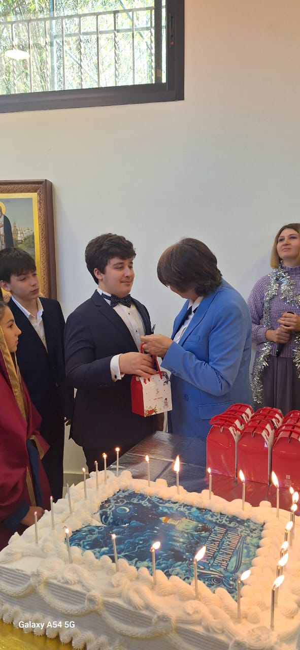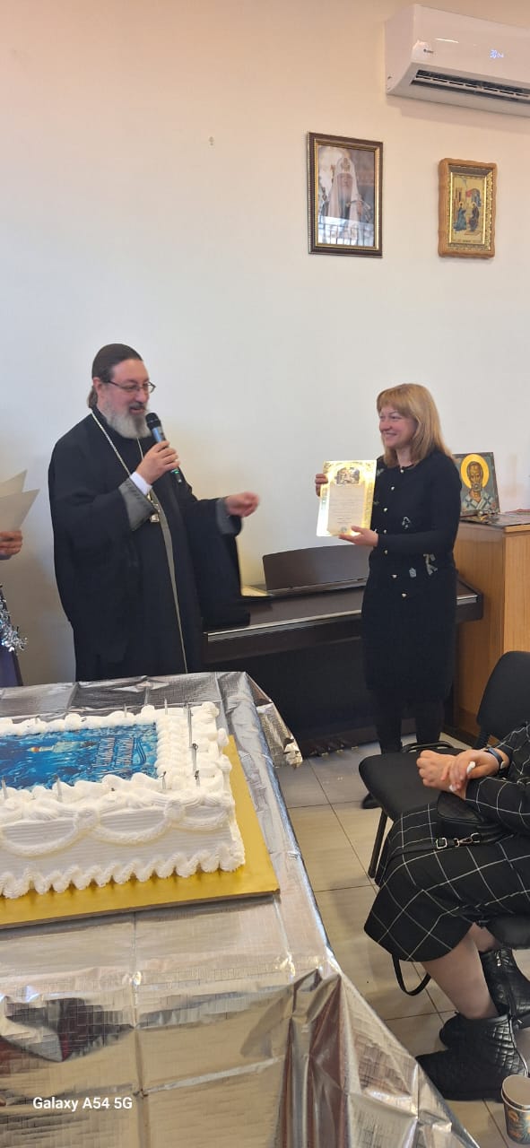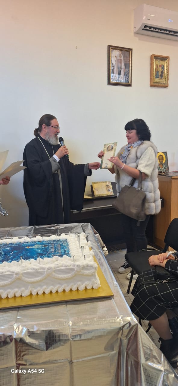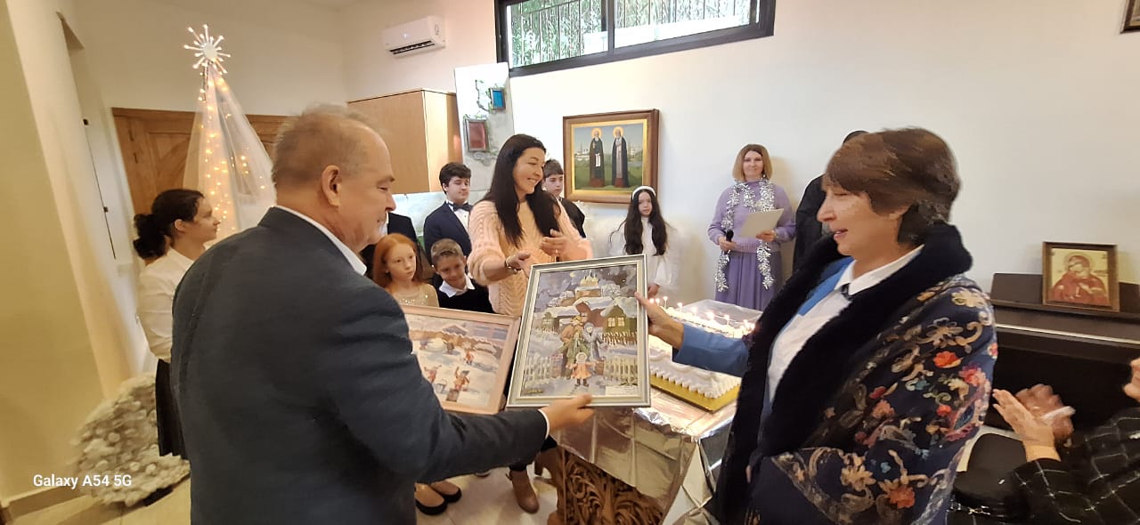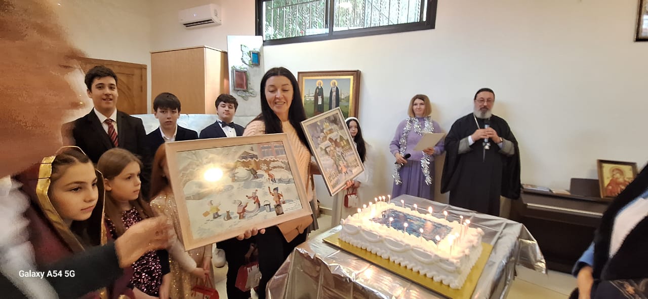 Затем настоятель поздравил с прошедшим днем рождения прихожан Подворья Нидал Хаддад, Александра Семаан и Георгия Касатли, вручил им памятные подарки и возгласил многолетие.