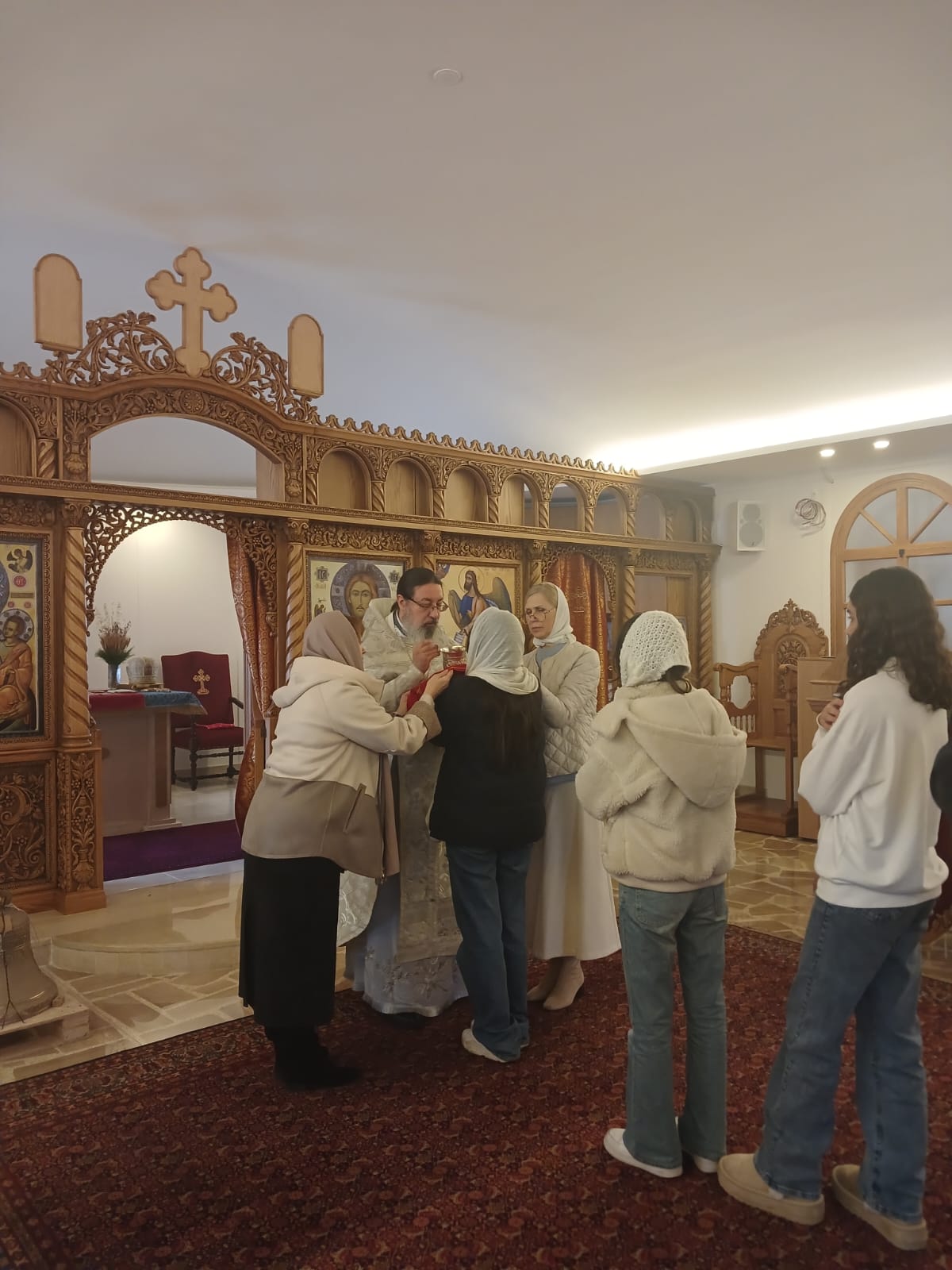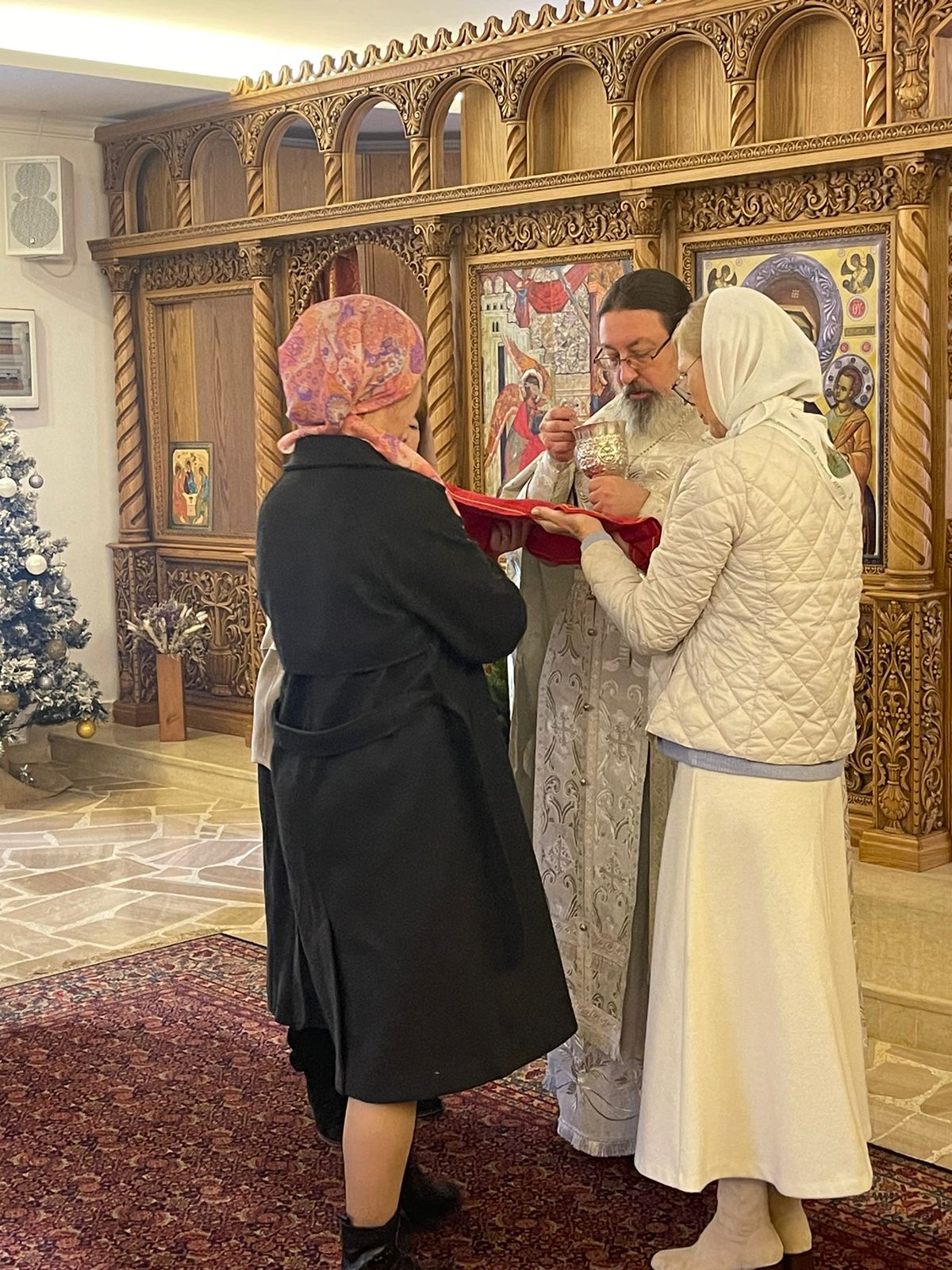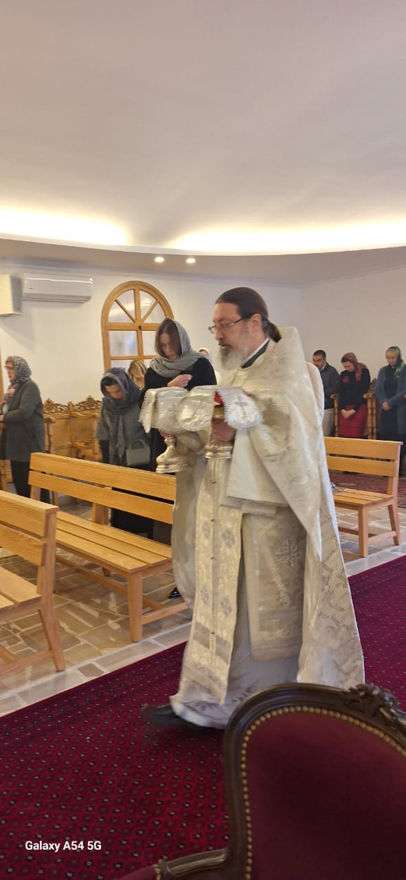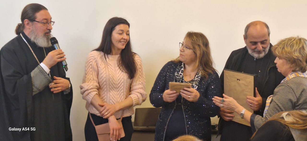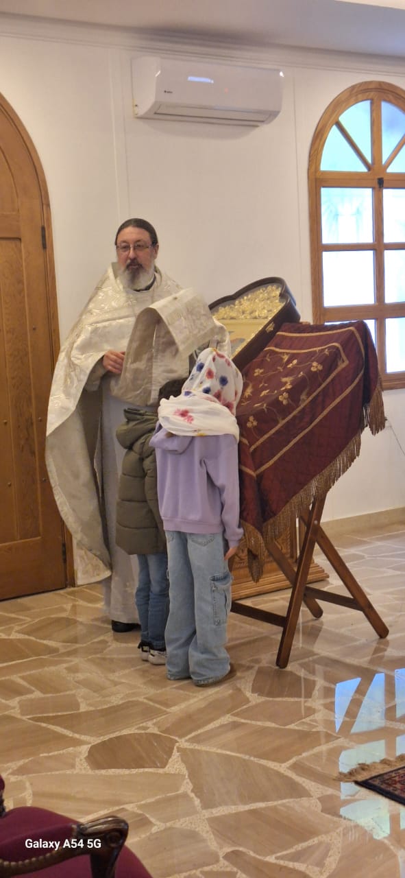 Затем настоятель поздравил с прошедшим днем рождения прихожан Подворья Нидал Хаддад, Александра Семаан и Георгия Касатли, вручил им памятные подарки и возгласил многолетие.