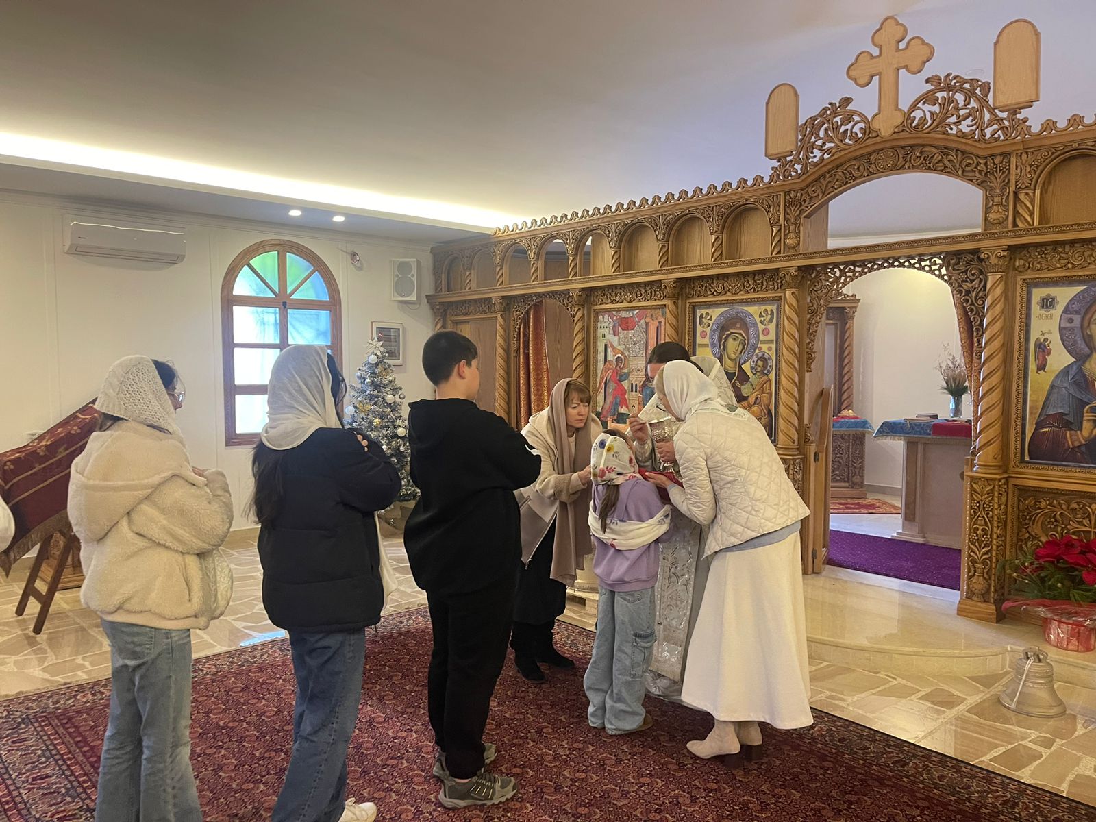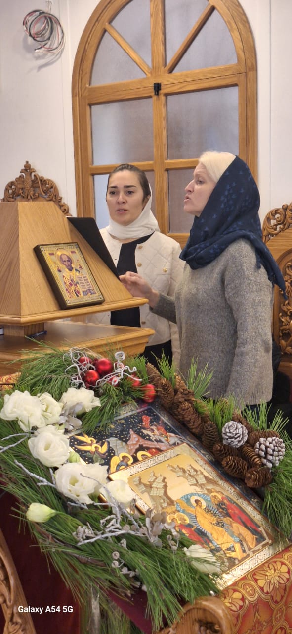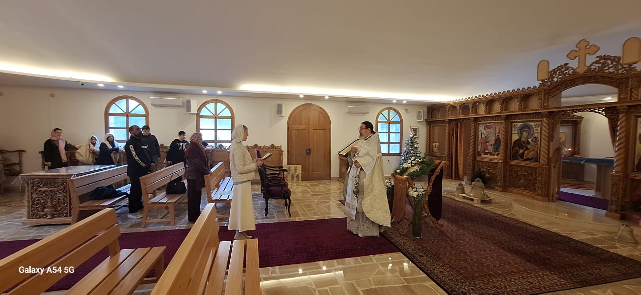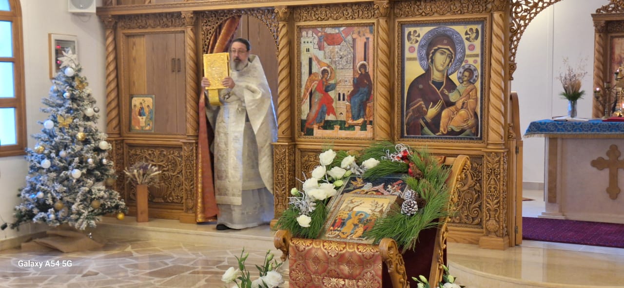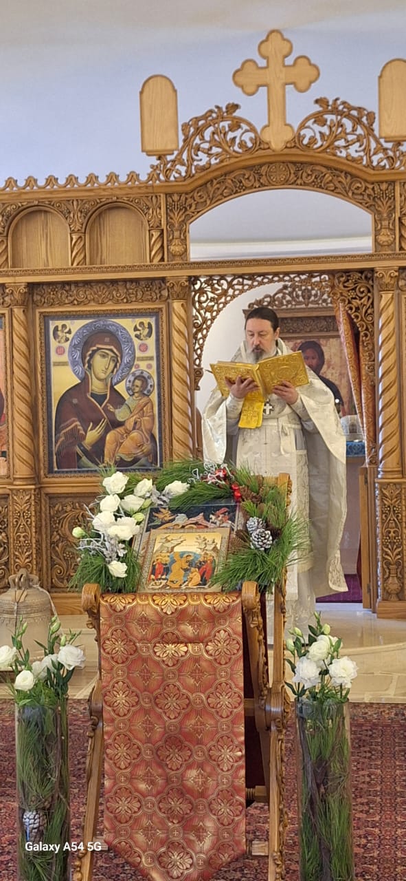 На сугубой ектении были вознесены особые прошения, настоятель прочитал молитву о Святой Руси. После отпуста Божественной литургии было совершено славление празднику Рождества Христова. Проповедь на тему Недели по Рождестве Христовом произнес архимандрит Филипп.