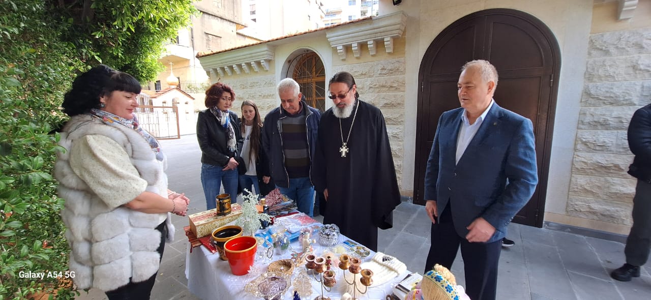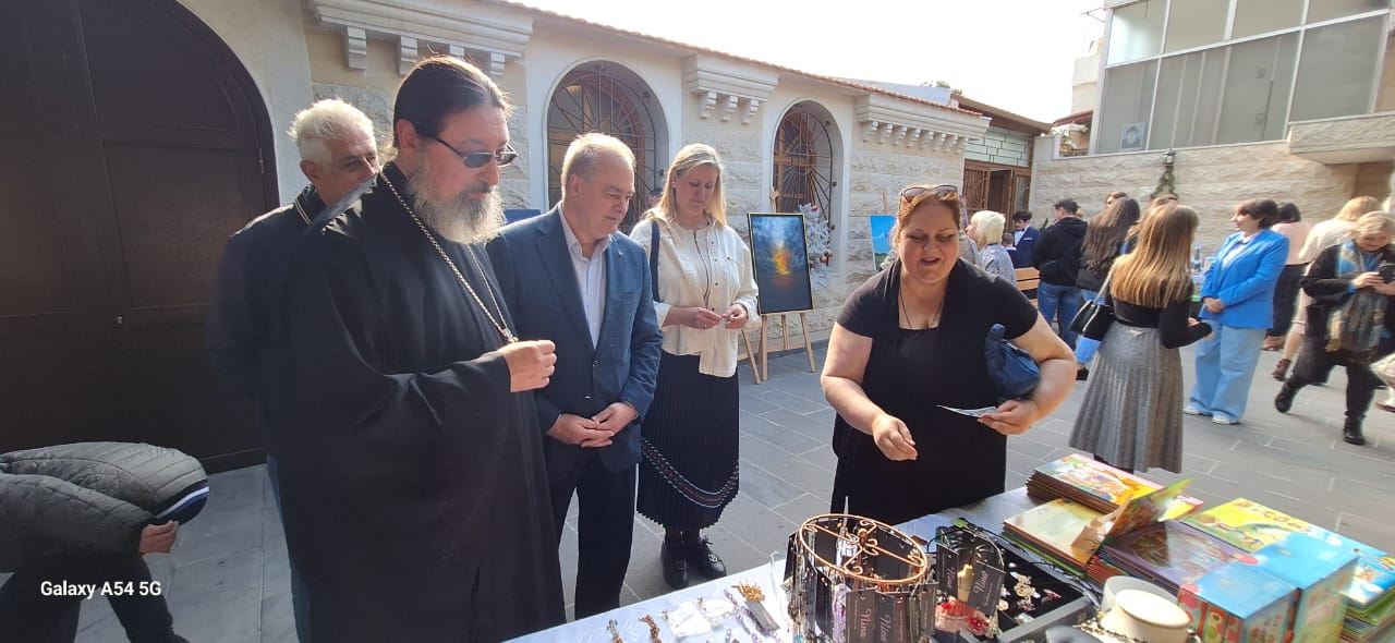На открытии выставки присутствовал Чрезвычайный и Полномочный посол Российской Федерации в Ливане Рудаков А.Н. с супругой, директор Русского дома Сорокин А.А., многочисленные гости праздника. Перед открытием выставки с кратким словом к гостям обратился архимандрит Филипп. Настоятель рассказал об истории рождественских ярмарок в Западной Европе и в России и поблагодарил прихожан Подворья за их труды по организации выставки-распродажи.