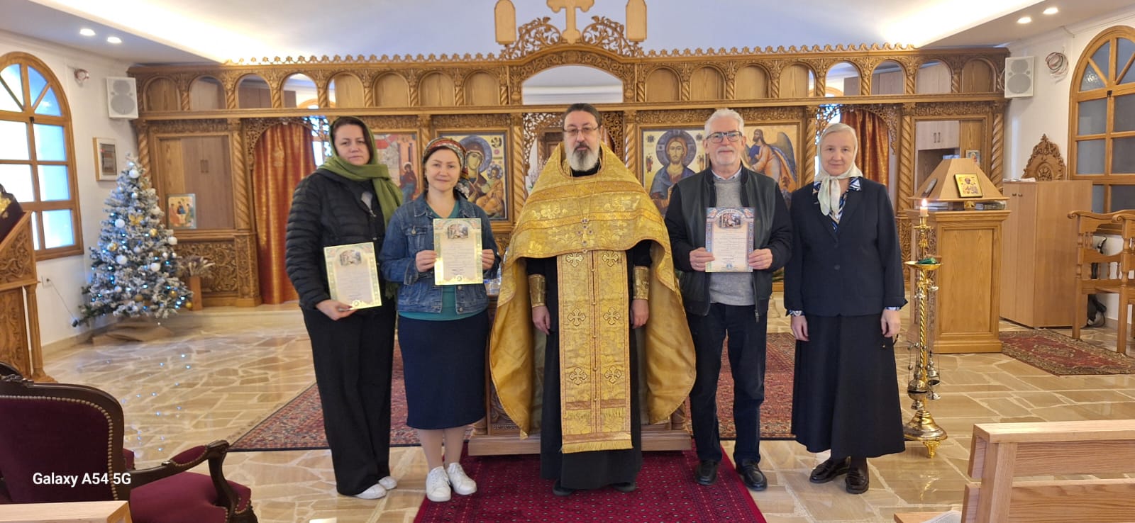 После отпуста богослужение проповедь на тему праздника произнес архимандрит Филипп. Затем настоятель вручил благодарственные грамоты сотрудникам и прихожанам Подворья за помощь в организации и проведении рождественских праздников.