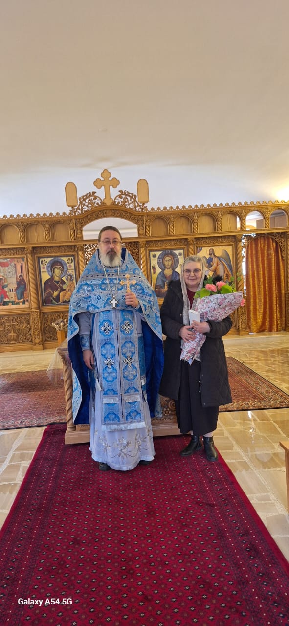Затем настоятель поздравил с прошедшим днем рождения постоянную прихожанку Подворья Екатерину Масри, вручил ей памятные подарки и возгласил многолетие.