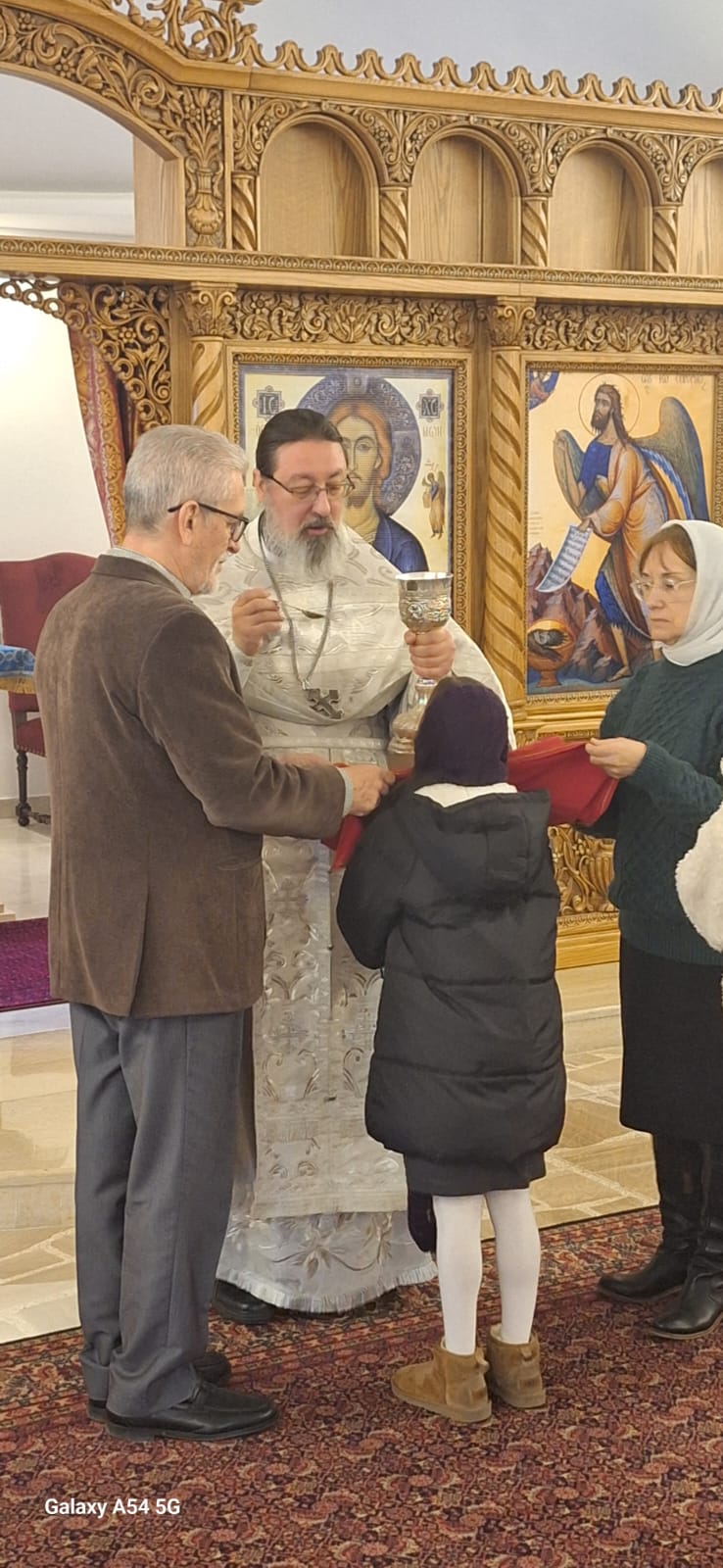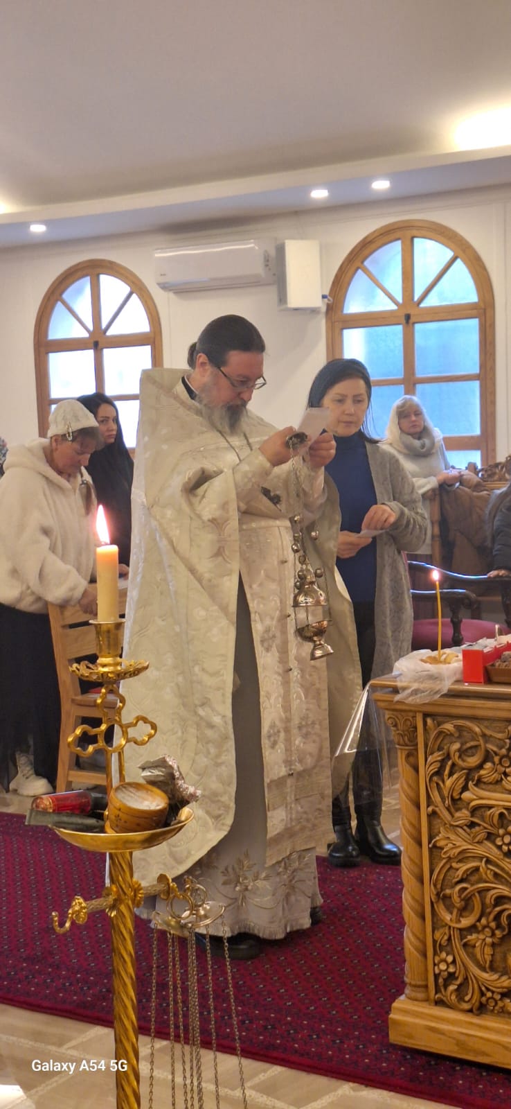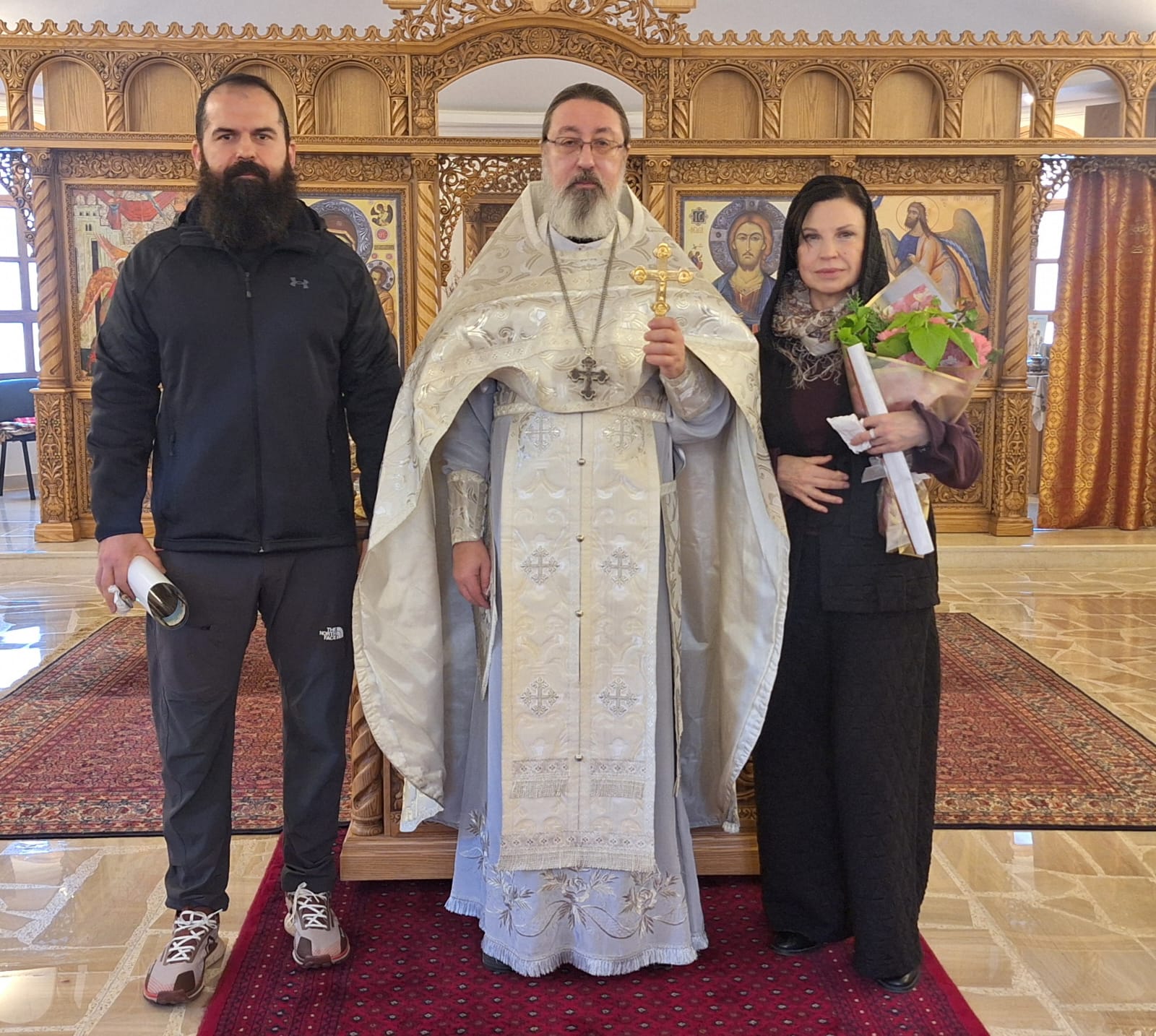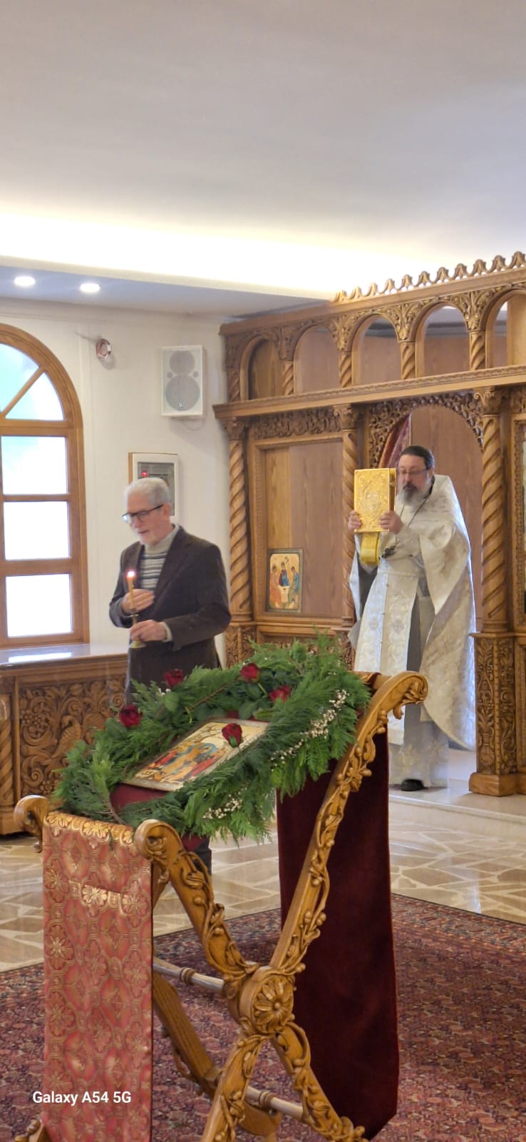 Затем настоятель поздравил с прошедшим днем рождения постоянных прихожан Подворья Виталия Эль-Дани и Неониллу Реайди, вручил им памятные подарки и возгласил многолетие.