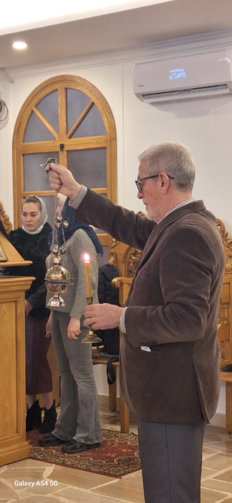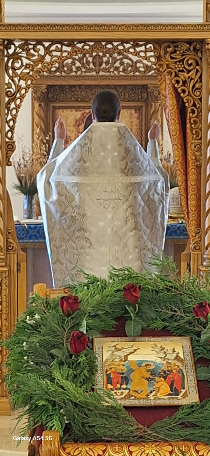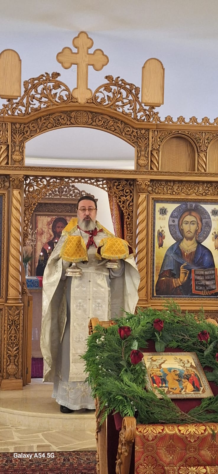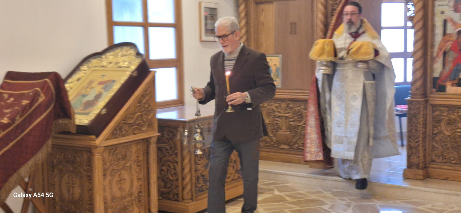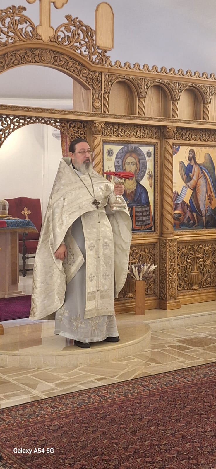 Затем настоятель поздравил с прошедшим днем рождения постоянных прихожан Подворья Виталия Эль-Дани и Неониллу Реайди, вручил им памятные подарки и возгласил многолетие.