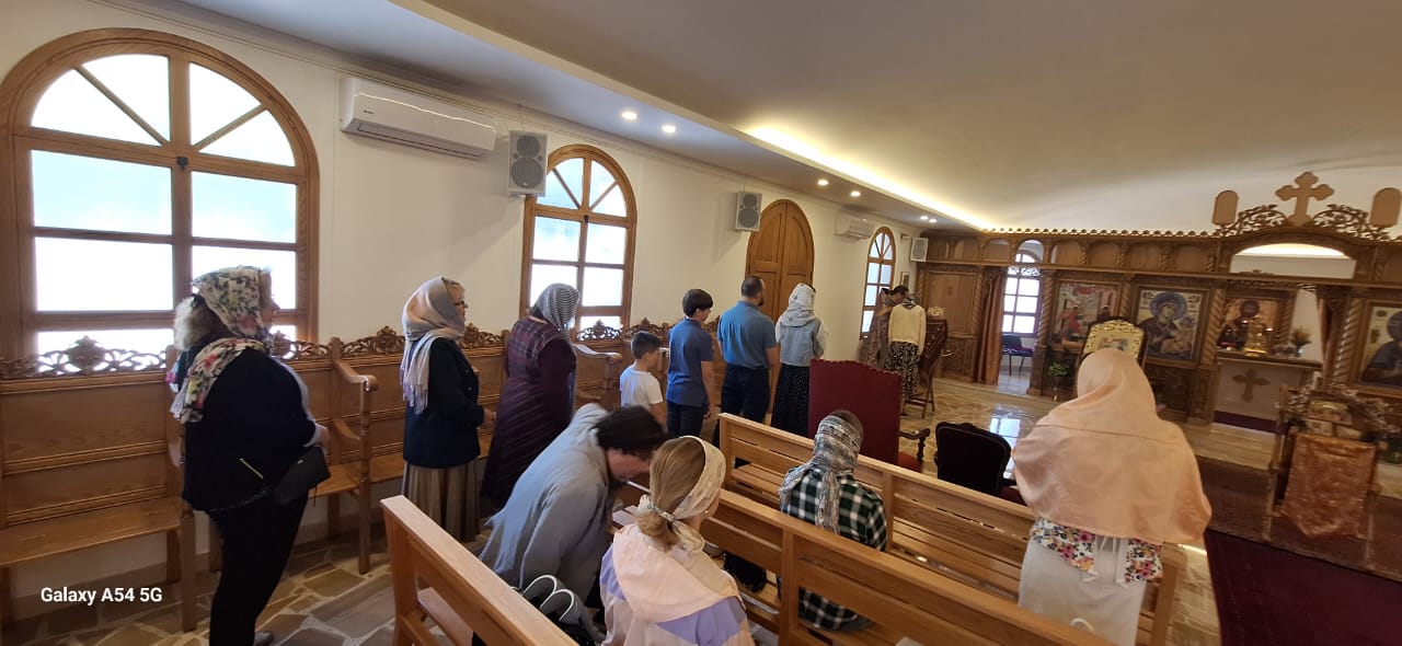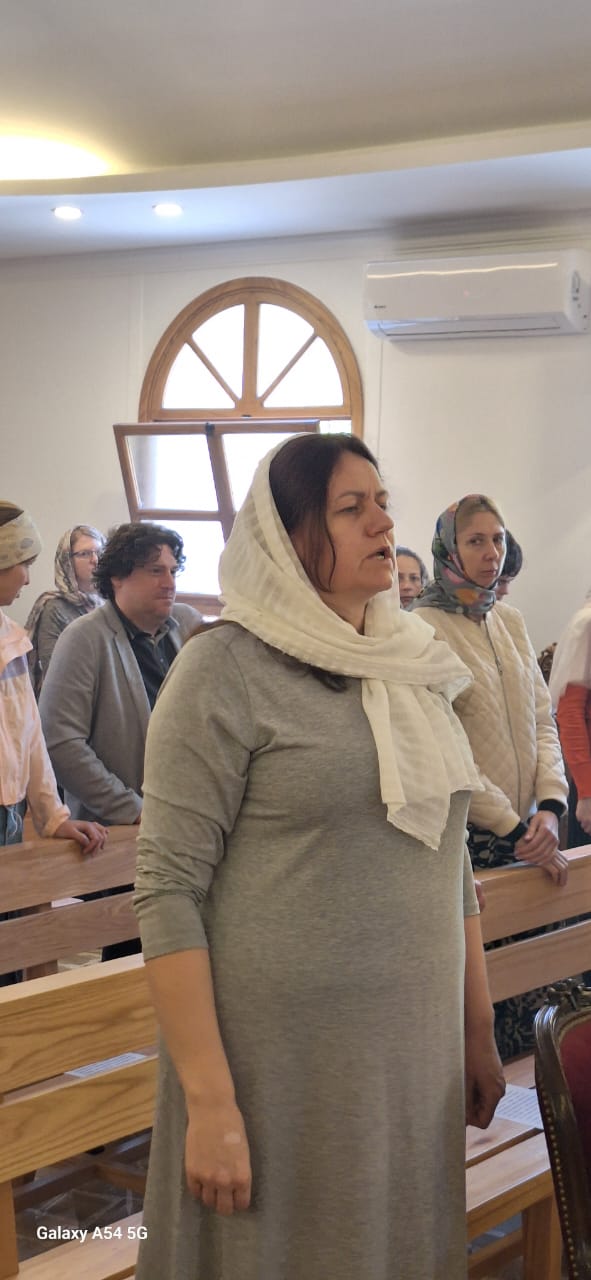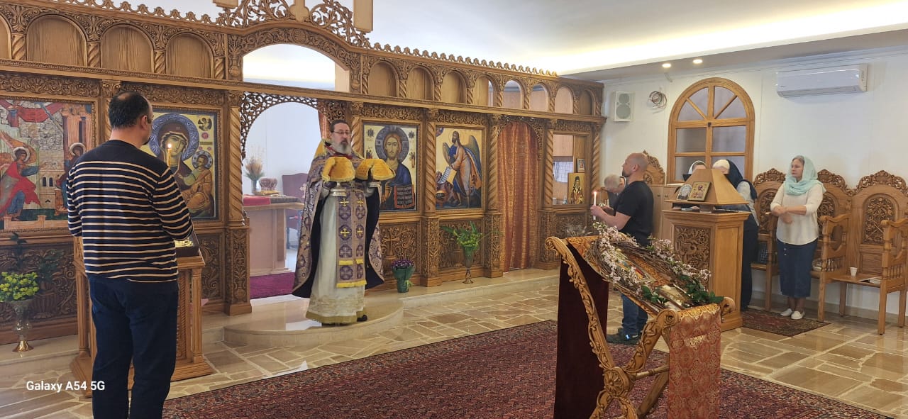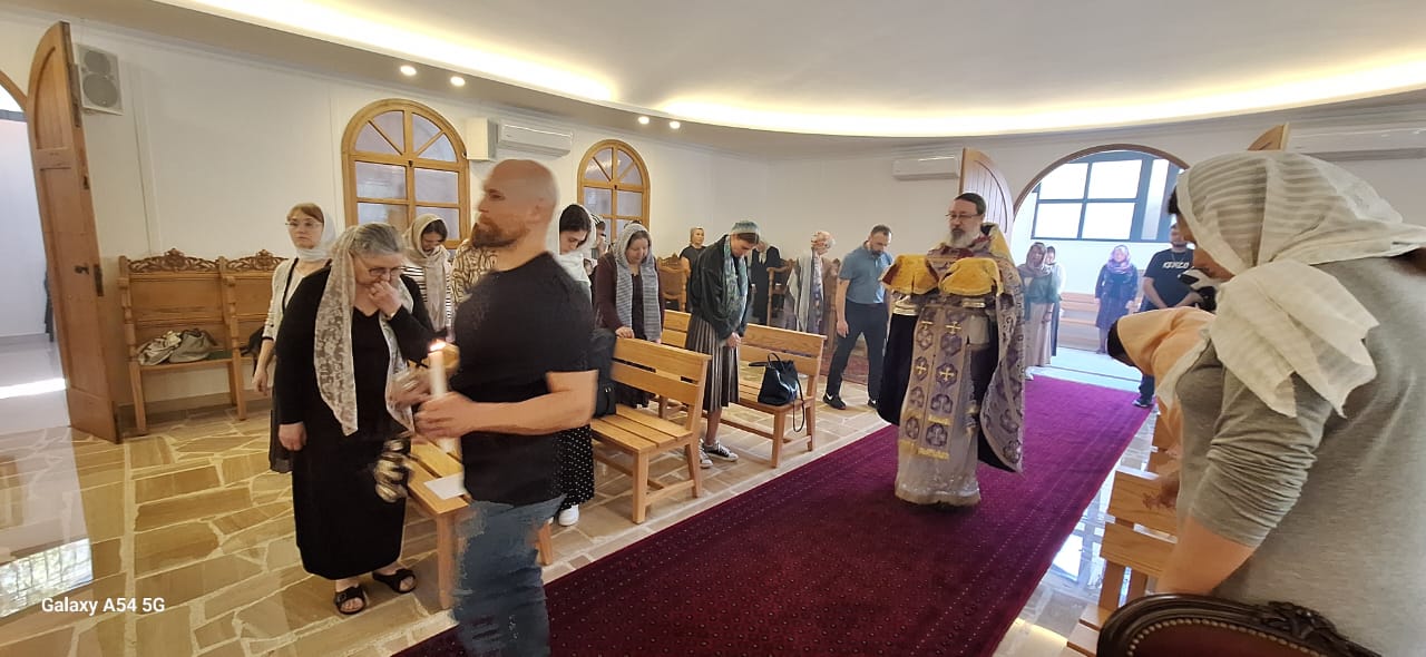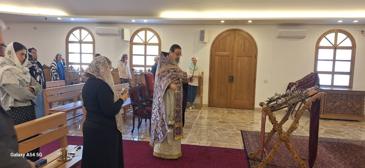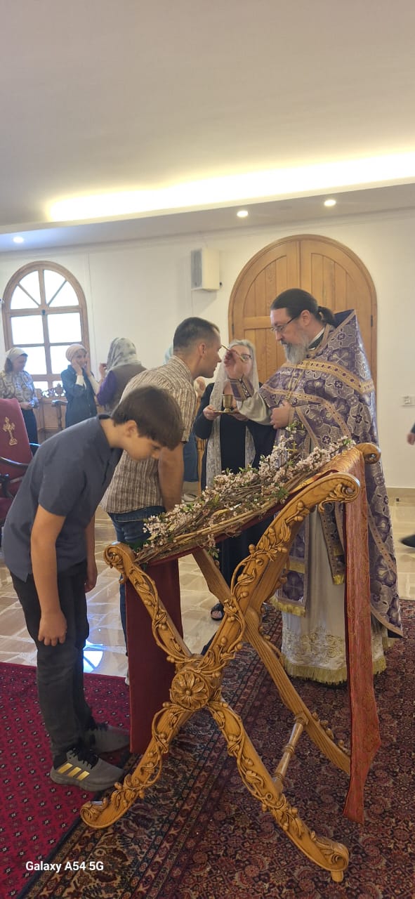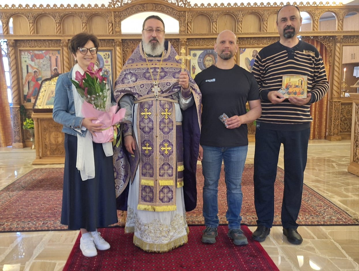 Затем настоятель поздравил с памятными датами постоянных прихожан Подворья Ирину Салху, Романа Хаддата и Иосифа Хури, вручил им памятные подарки и возгласил многолетие.