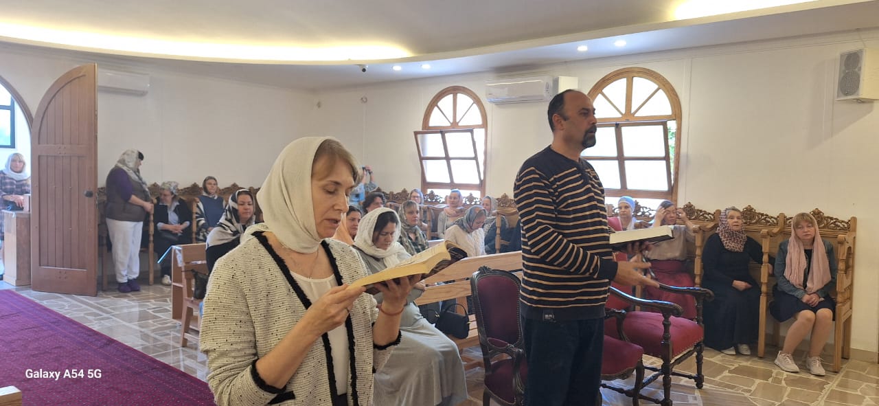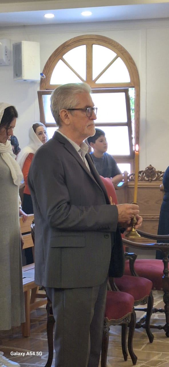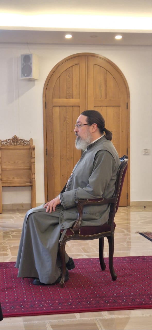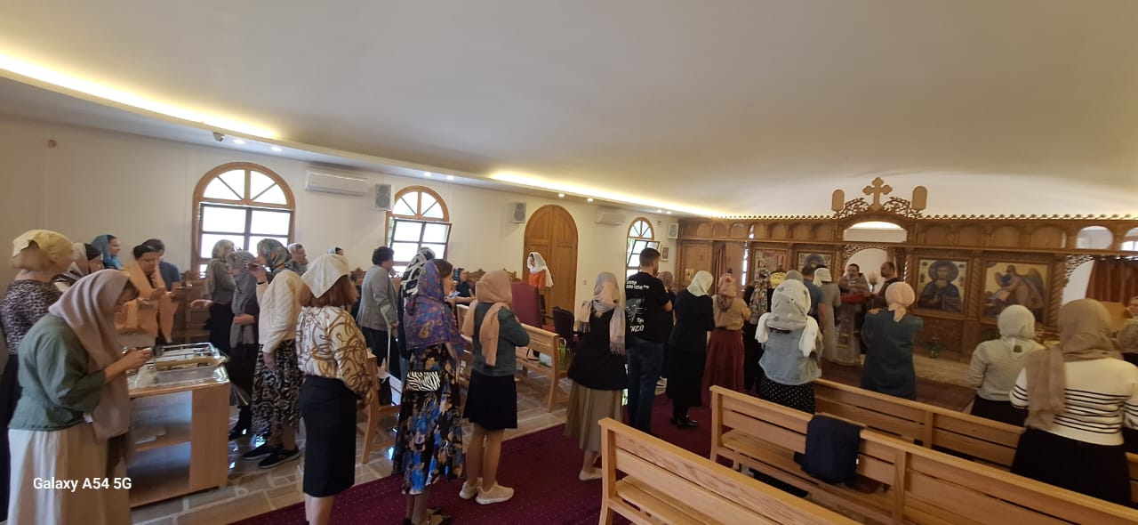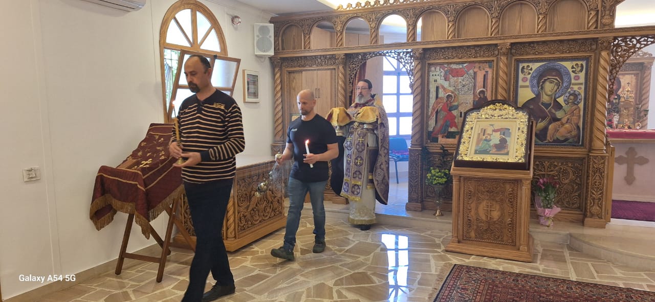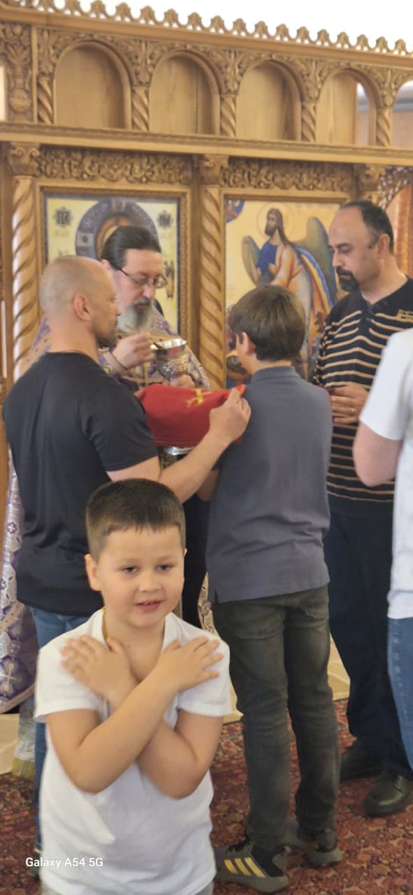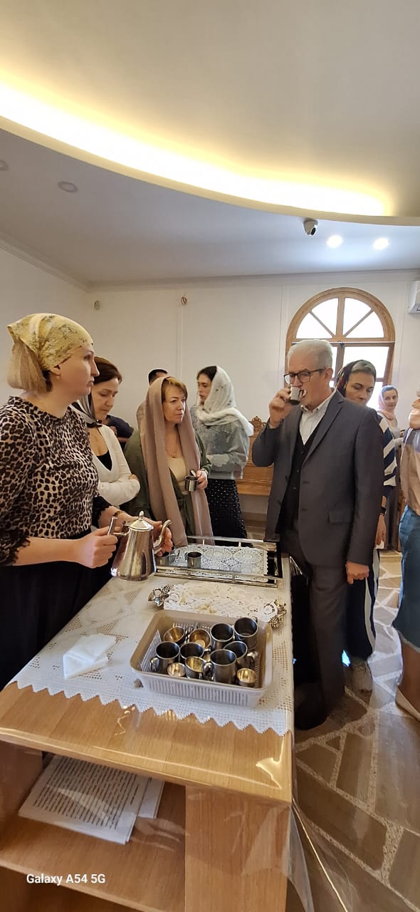Затем настоятель поздравил с памятными датами постоянных прихожан Подворья Ирину Салху, Романа Хаддата и Иосифа Хури, вручил им памятные подарки и возгласил многолетие.
