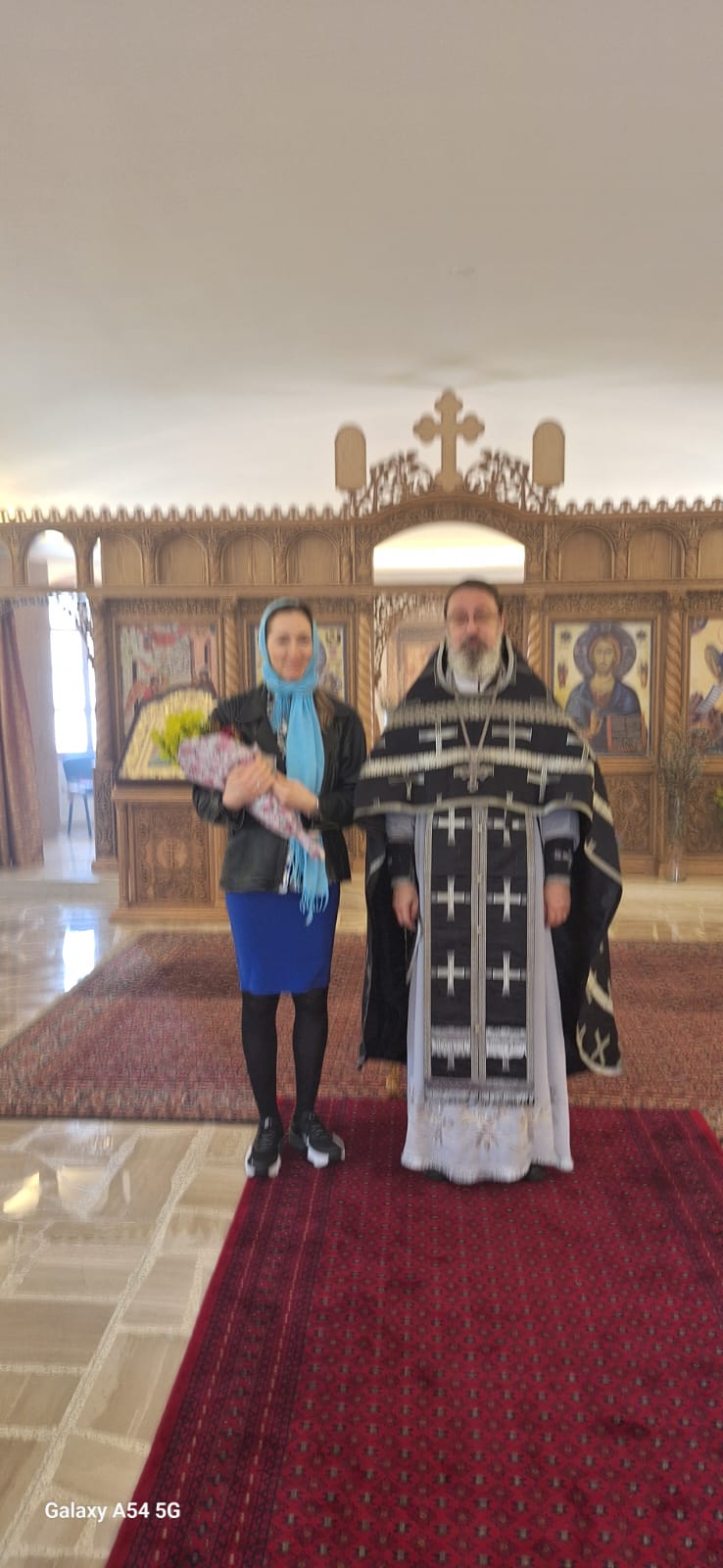 Затем настоятель поздравил с днем рождения постоянную прихожанку Подворья Елену Ногтеву и вручил ей памятный подарок.