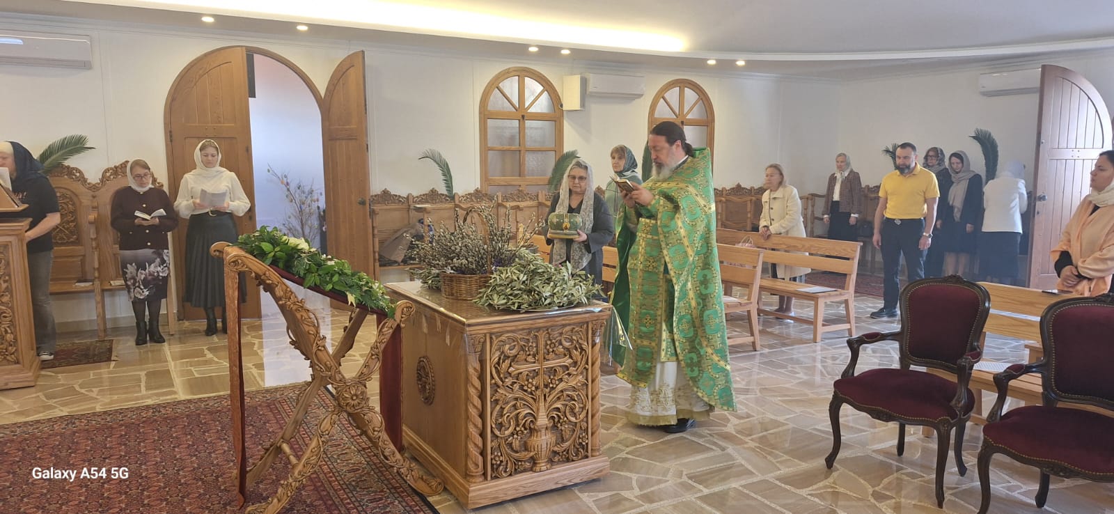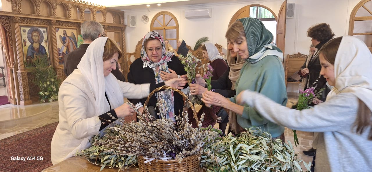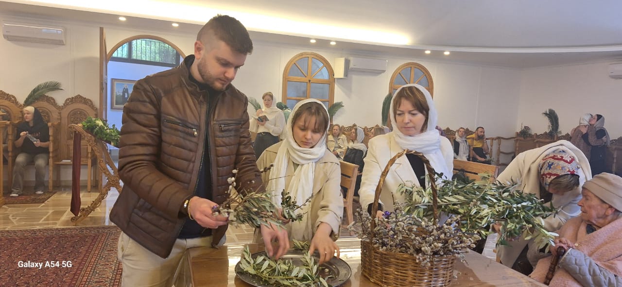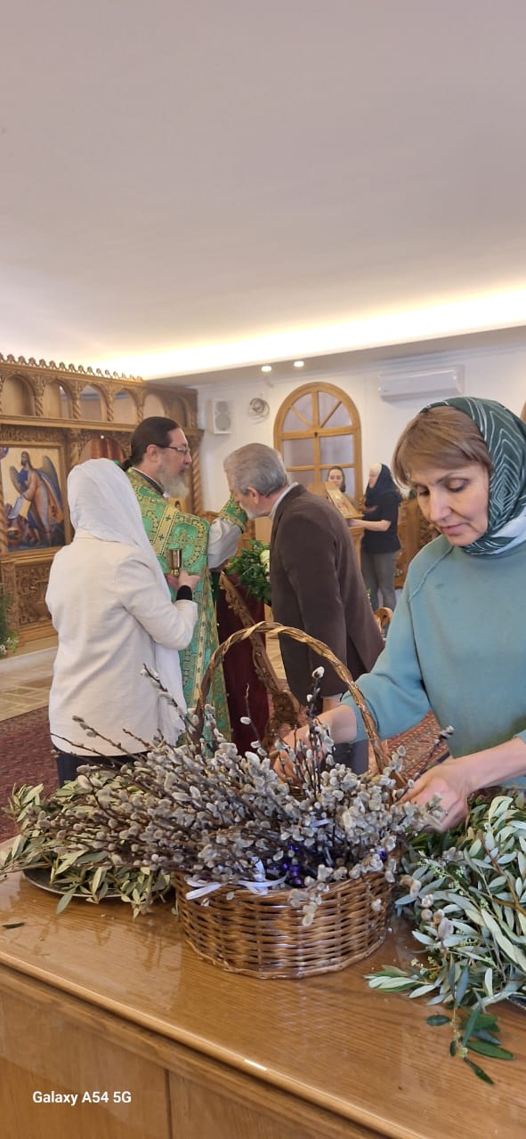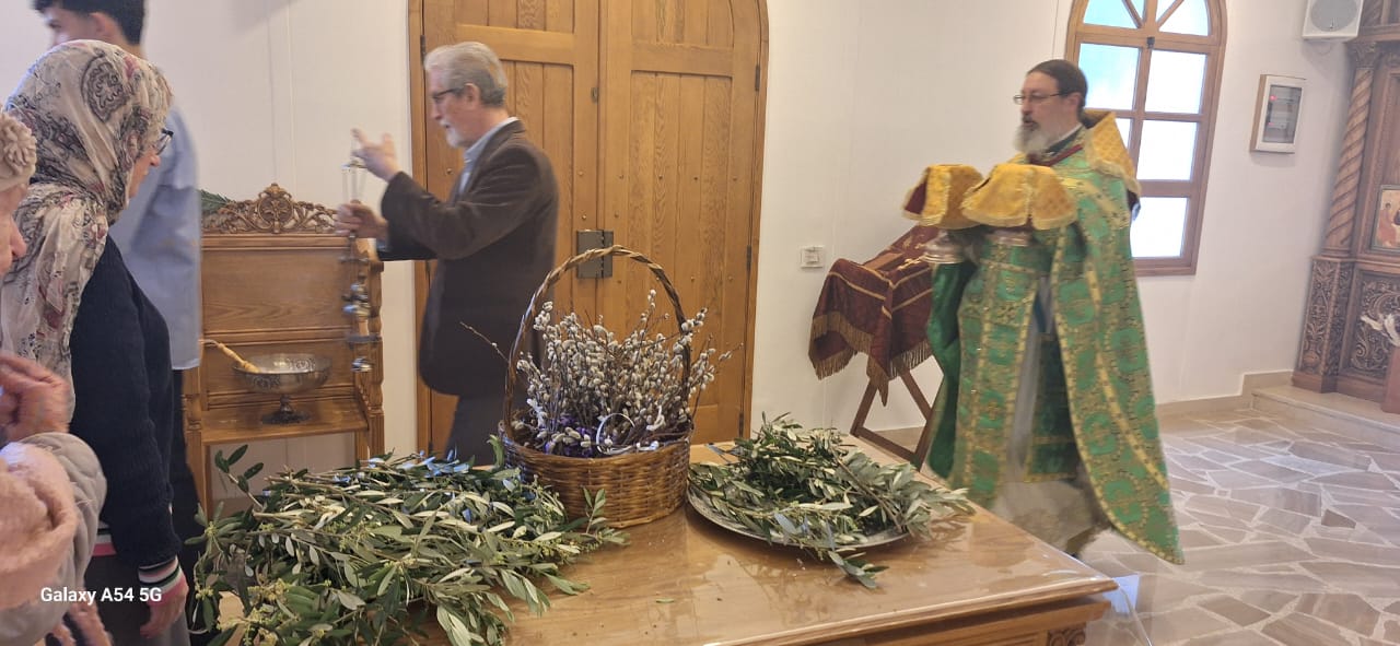В воскресенье, 13 апреля, в день Великого двунадесятого праздника Входа Господня во Иерусалим в храме Благовещения Пресвятой Богородицы была совершена Утреня с Чином освящения ваий и Божественная литургия святителя Иоанна Златоуста.