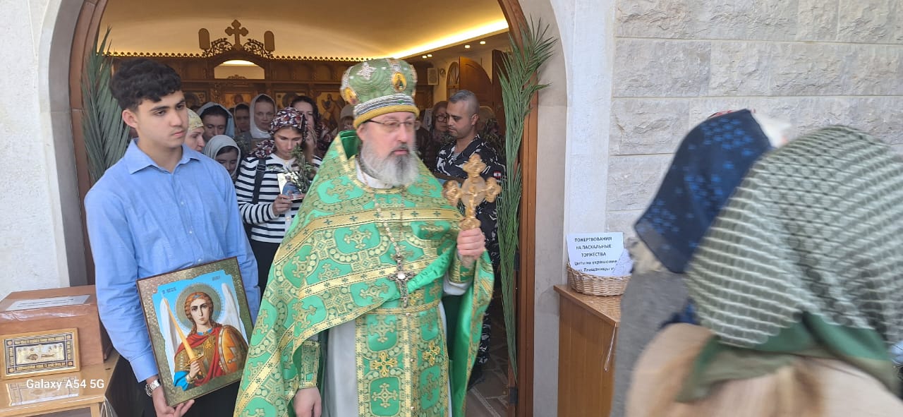 После отпуста Божественной литургии было совершено славление празднику Входа Господня во Иерусалим.